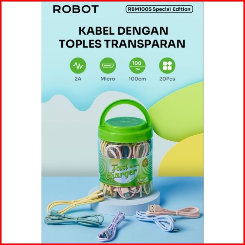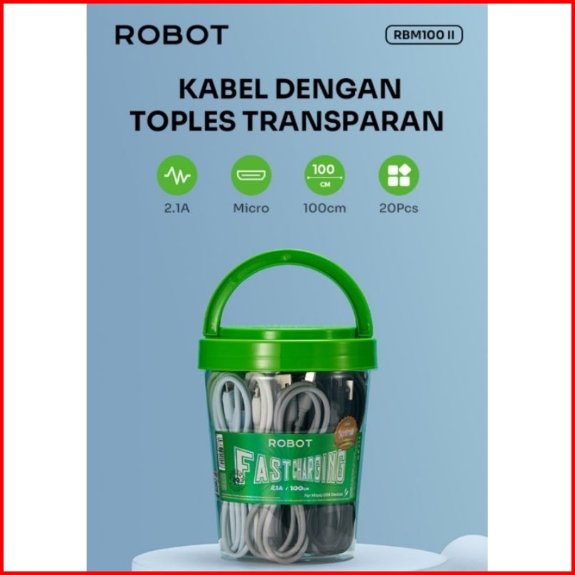 Promo 1 Toples Isi 20 Psc Kabel Data Usb Charge Robot Rbm100 2a 100cm Fast Charging Isi 20pcs Micro V8 Rbc100s Isi 20 Pc