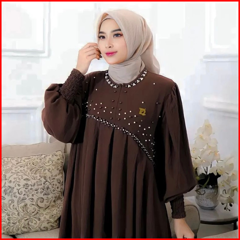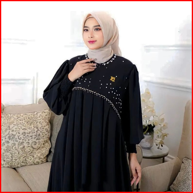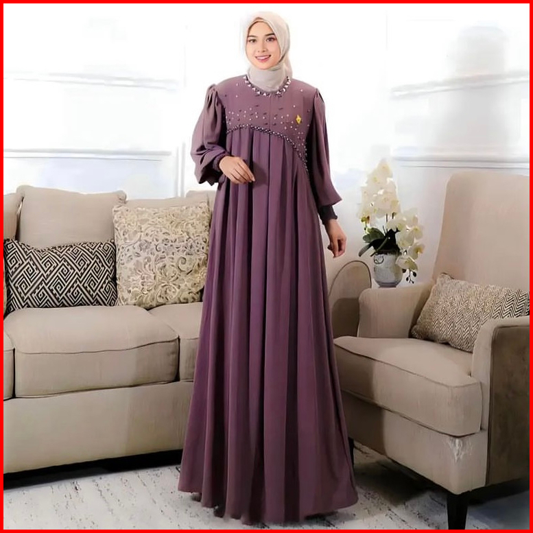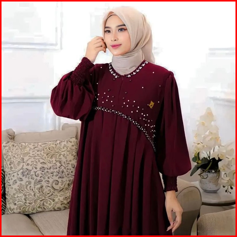 Bursa Dress Crinkle Airflow Premium Gamis Kringkel Kombinasi Payet Mutiara Gamis Terbaru Elegan Simple Mewah Gamis Payet