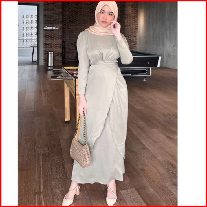 Yasmin Dress - Dress Kaftan Satin Silk Gamis Kekinian Gamis Kondangan Dress Korean Style Gamis Wudhu Friendly Dress Prem