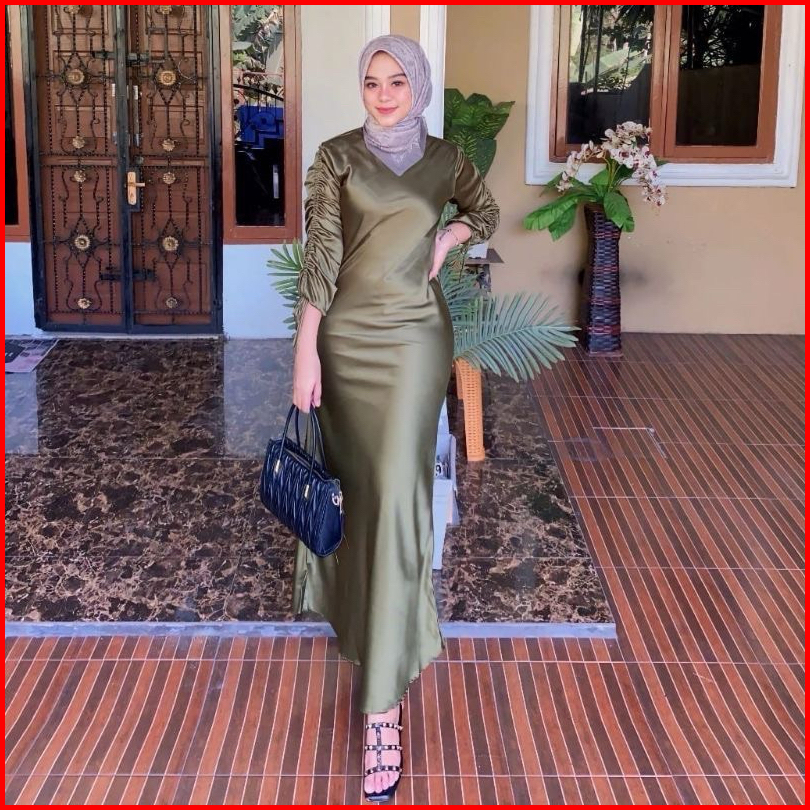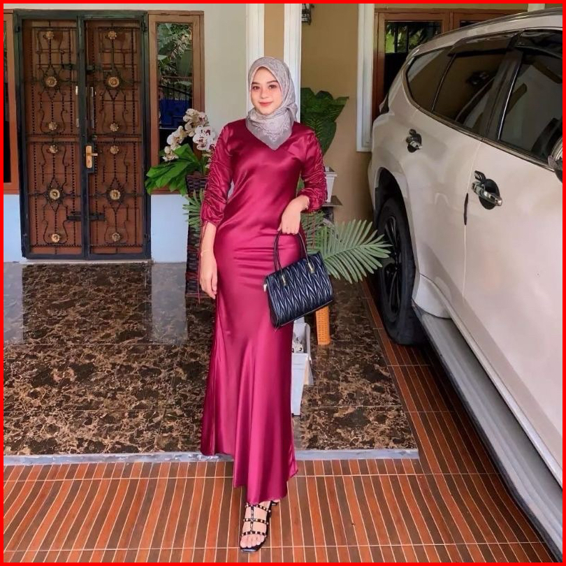 Terlaris Darla Dress Premium Dress Kondangan Terbaru 2024 Dress Korean Style Dress Satin Silk Full Serut Long Dress Seru