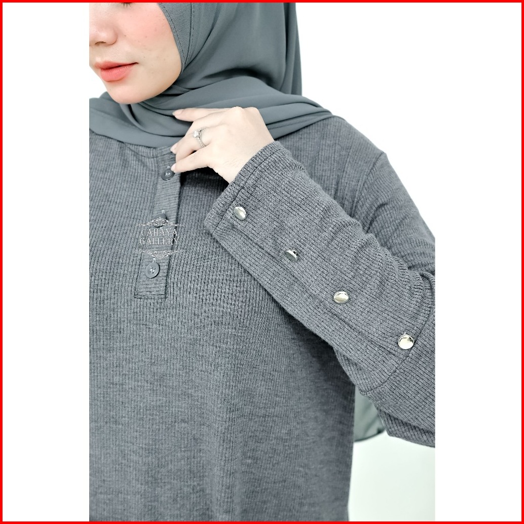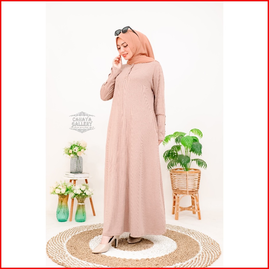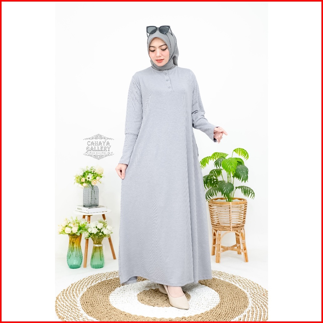 Keyra Dress Batwing Button Knit Premium - Gamis Casual Simpel Panjang Muslim Sporty Busui