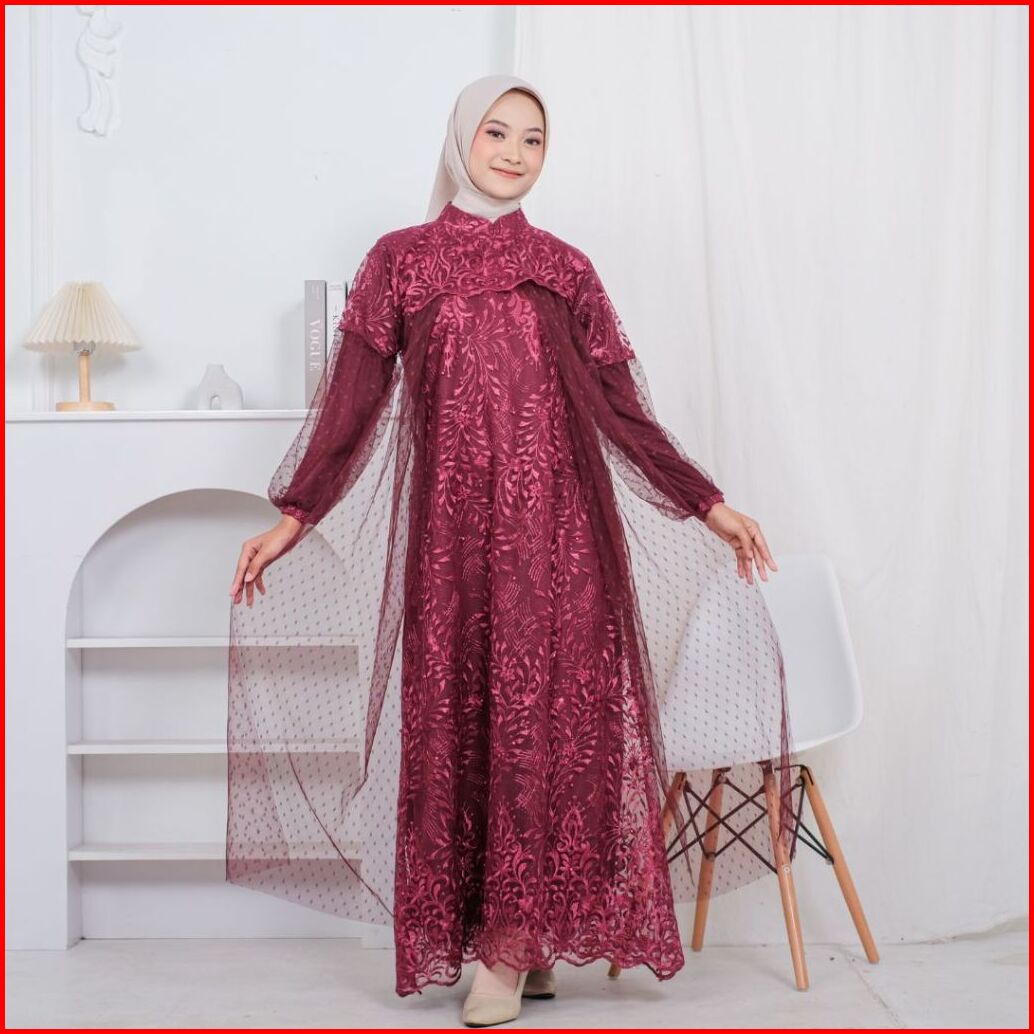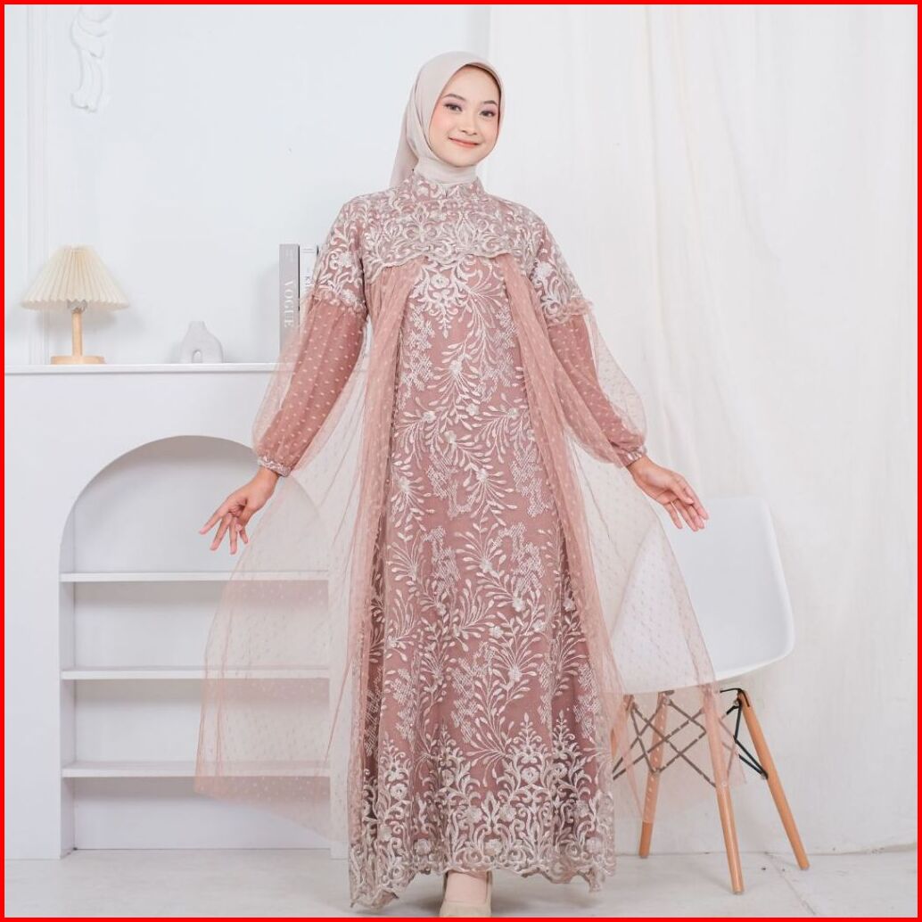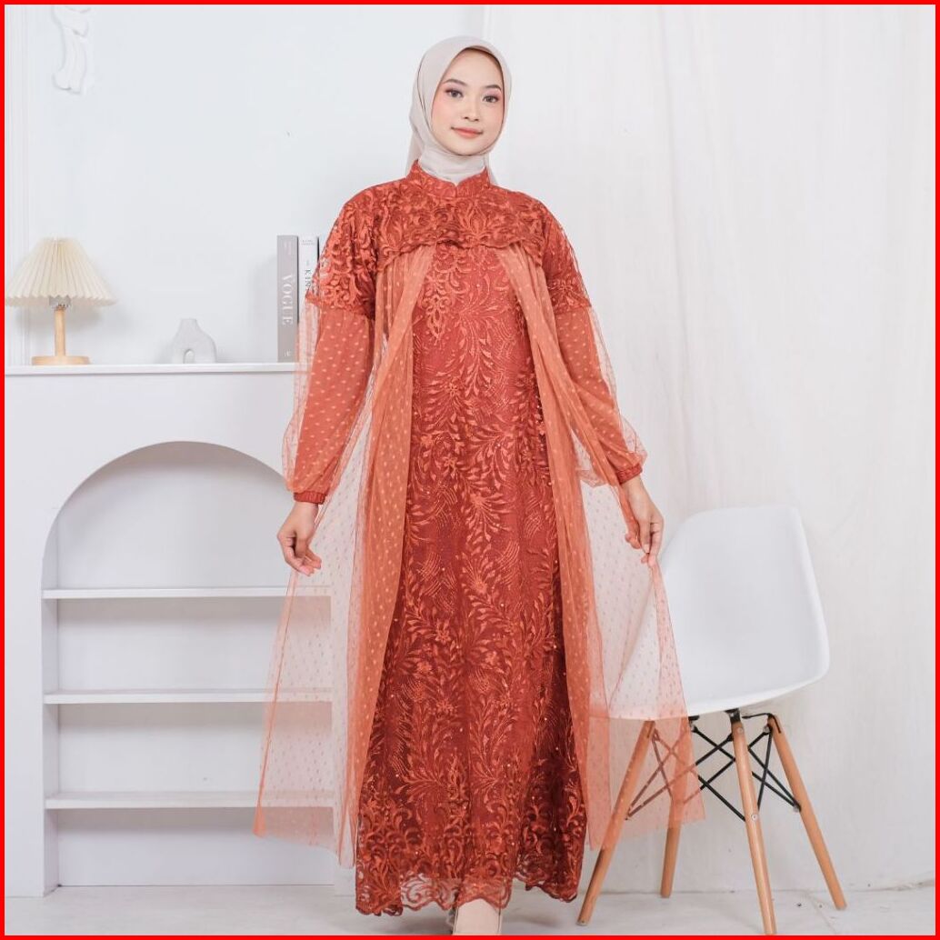 Raisha-nusaibah Gaun Dress Brokat Kondangan 2024 Full Tile Brokat Gamis Pesta Mewah Elegan