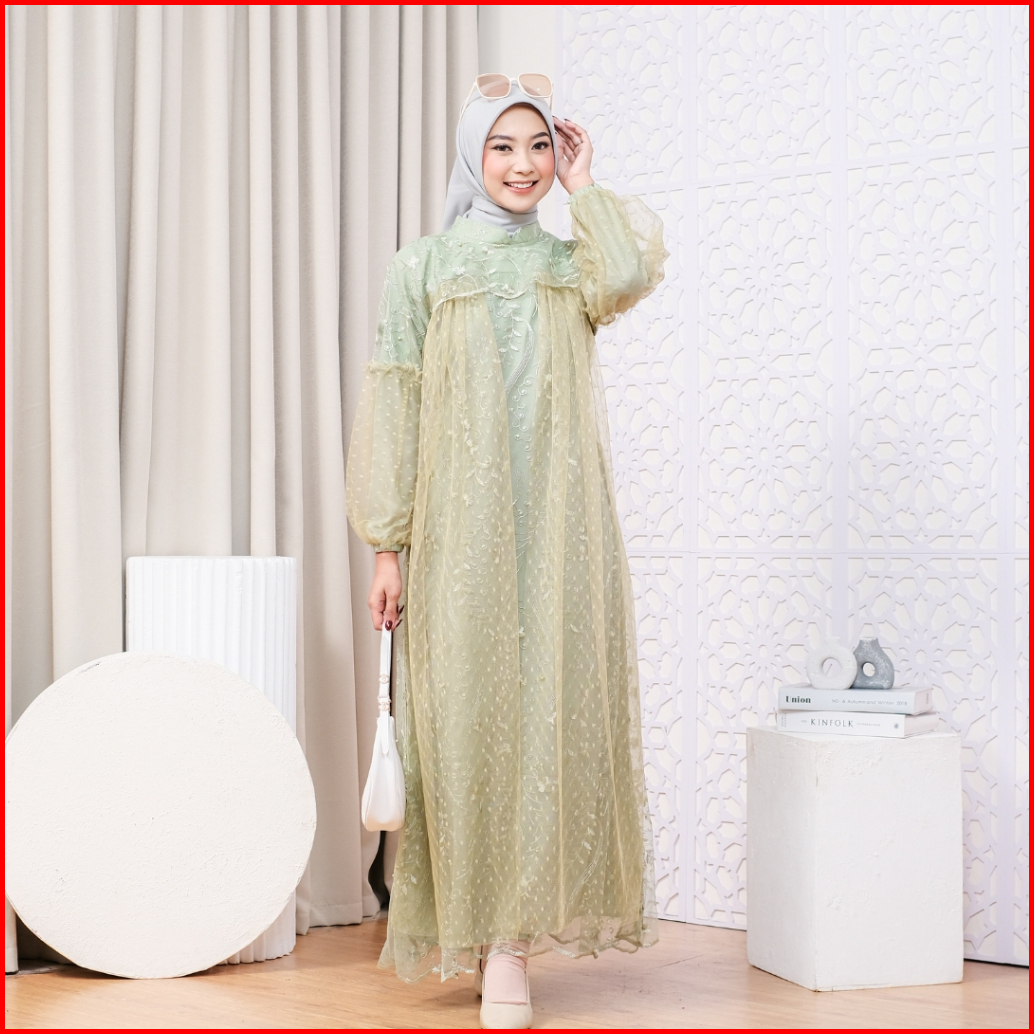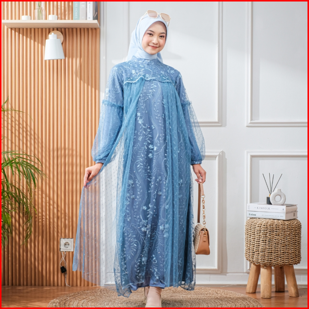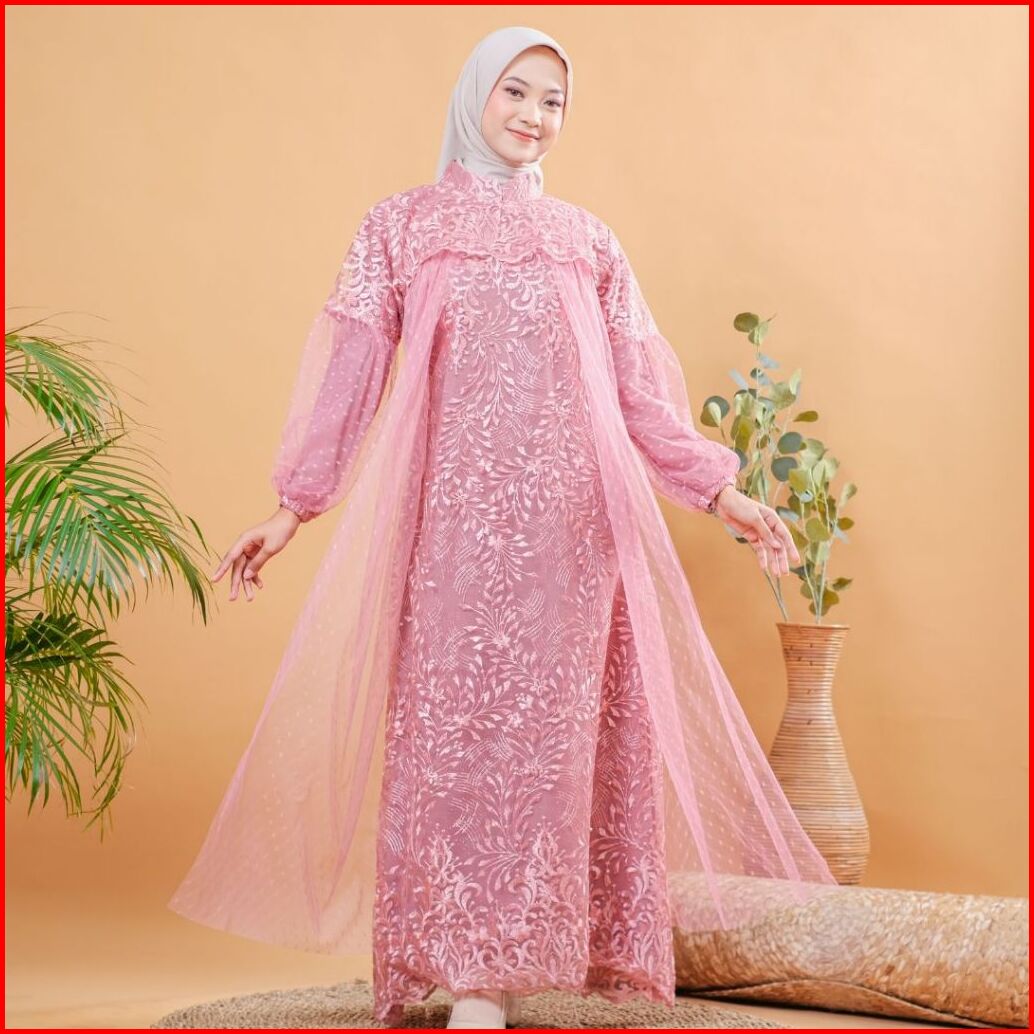 Raisha-nusaibah Gaun Dress Brokat Kondangan 2024 Full Tile Brokat Gamis Pesta Mewah Elegan
