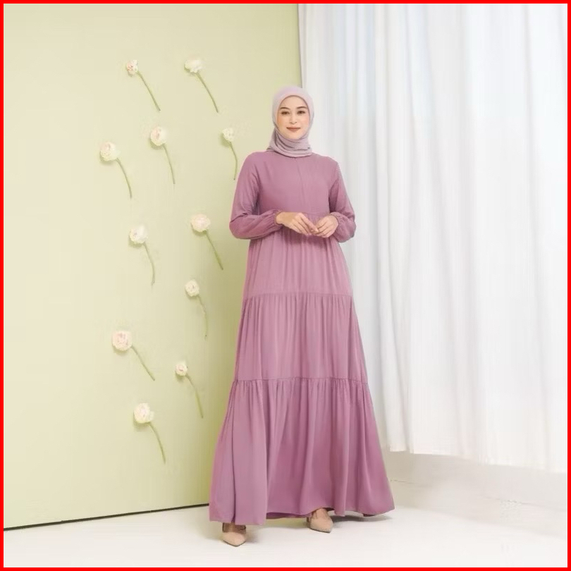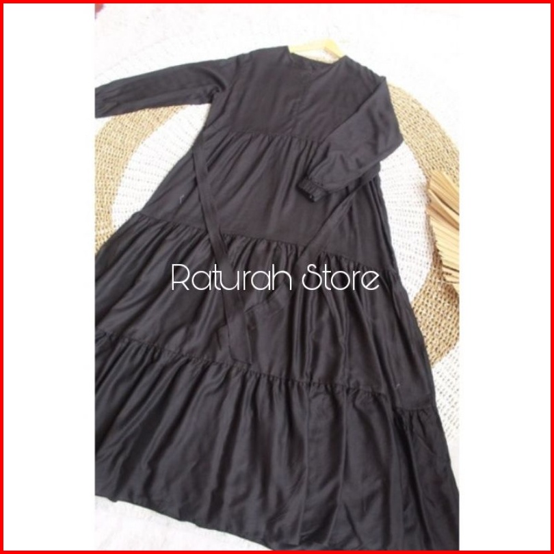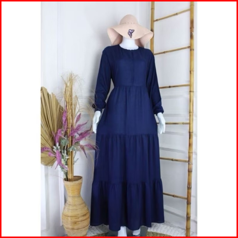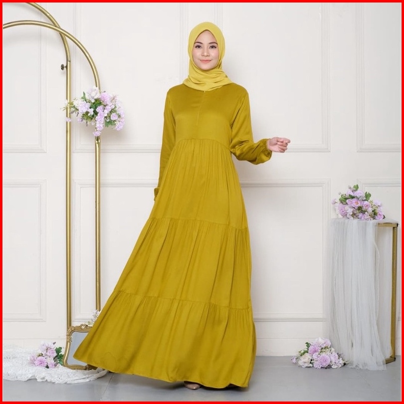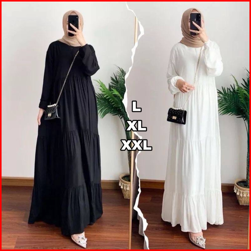 Hanum Dress Rayon Premium Casandra Dress Baju Kondangan Busui Friendly Gamis Susun Ruffle Polos Size M L Xl Xxl
