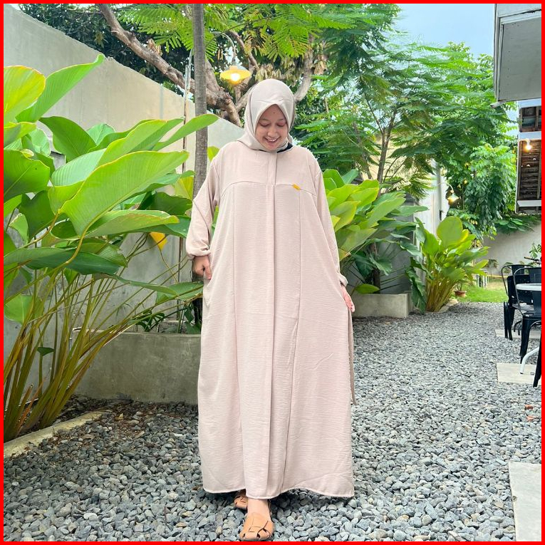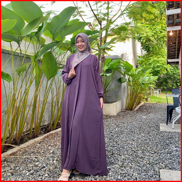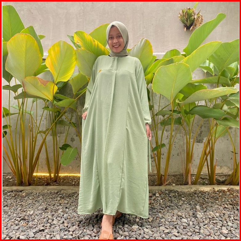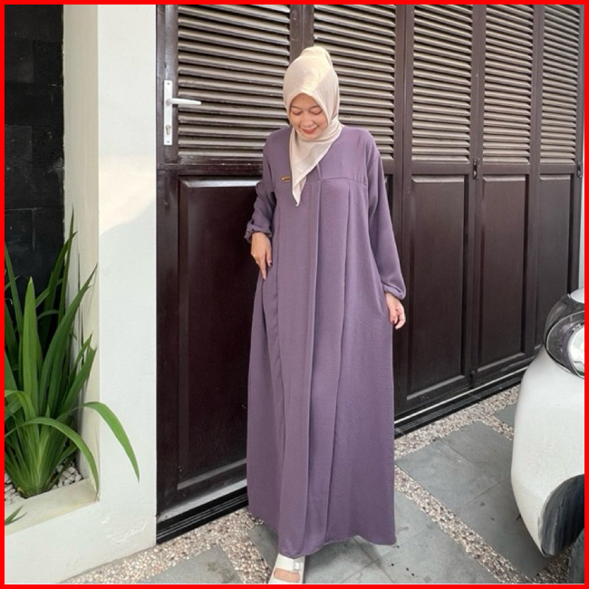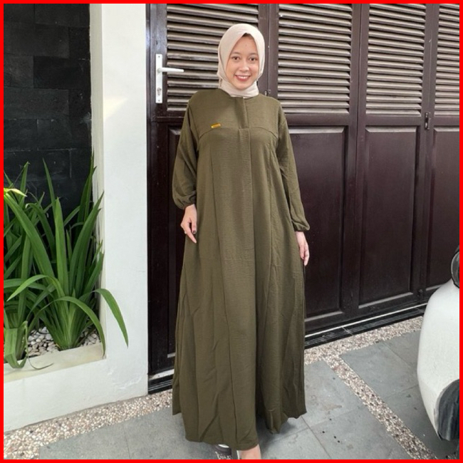 Gamis Abaya Elsira Crincle Airflow Ld 110-120 Pj 135-140cm Gamis Muslimah Free Bross