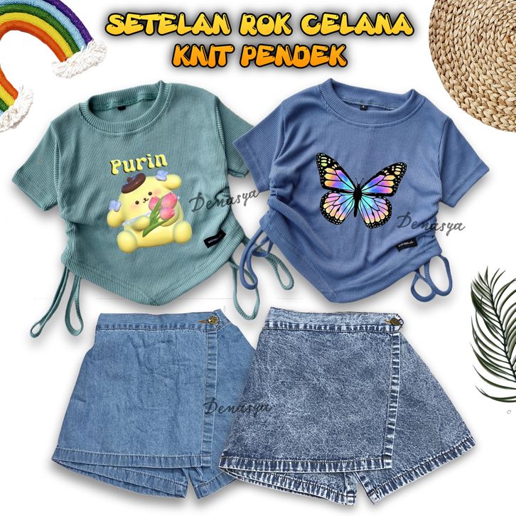 FREE ONGKIR SETELAN PENDEK ANAK PEREMPUAN ATASAN KNIT SERUT SABLON ROK CELANA JEANS ANAK 1-8 TAHUN