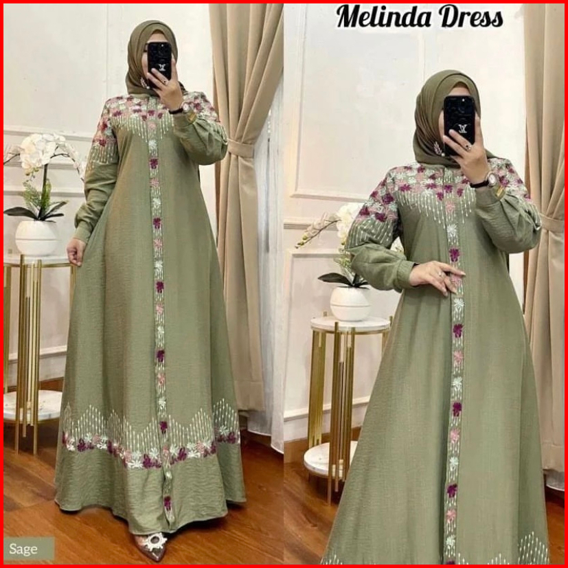 Melinda Dress Crinkle Airflow Premium Gamis Kringkel Kombinasi Bordir Gamis Terbaru Elegan Simple Mewah Gamis Bordir Ter