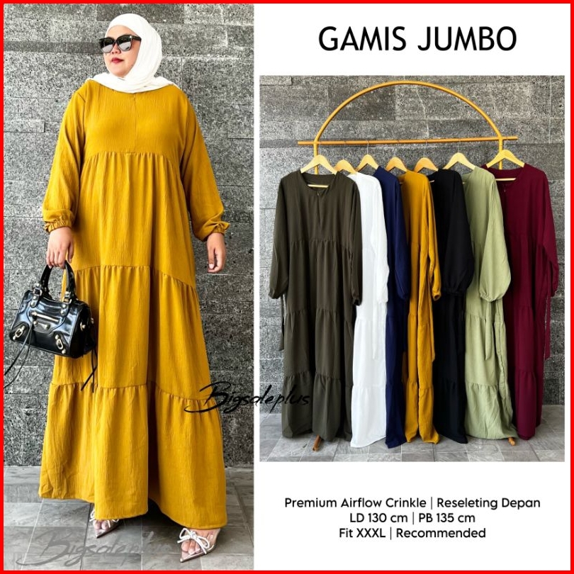 Bigsaleplus Gamis Jumbo Crinkle Premium Haanum Ld 130 - 140 Elegan Simple Murah Tapi Mewah