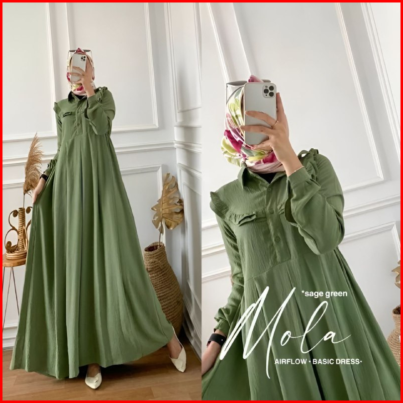 Mola Gamis Wanita Kekinian Bahan Crinkle Airflow Premium Dress Homey Busui