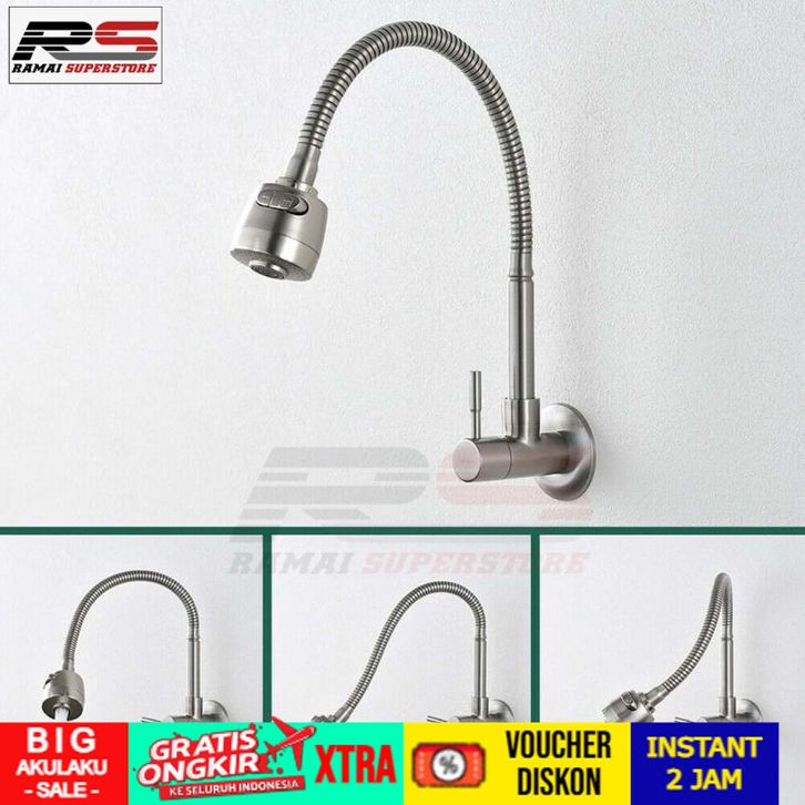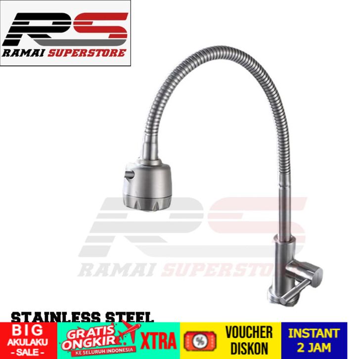 PROMO Keran Angsa Fleksibel Kepala Besar Kran Cuci Piring Sink SUS 304 Elegan KUALITAS PREMIUM