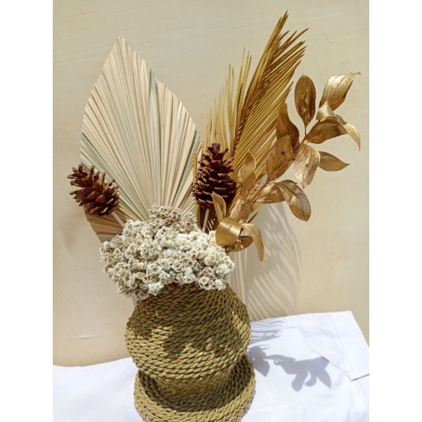 BUNGA KERING BUNGA HIASAN MEJA BUNGA HIASAN RUANG TAMU BUNGA HIAS SUDUT RUANGAN PAKET BUNGA KERING + POT GUCI MENDONG