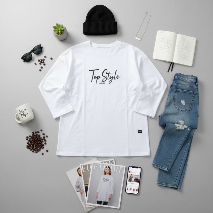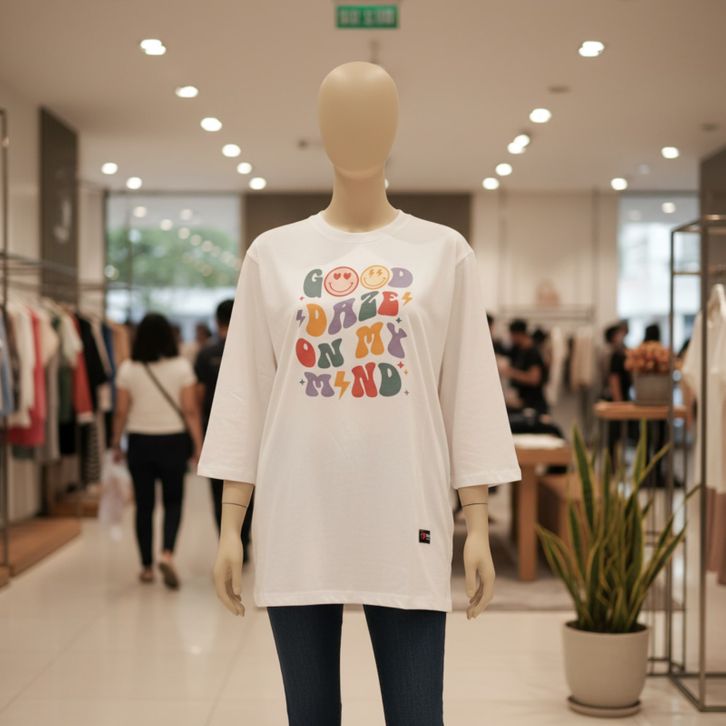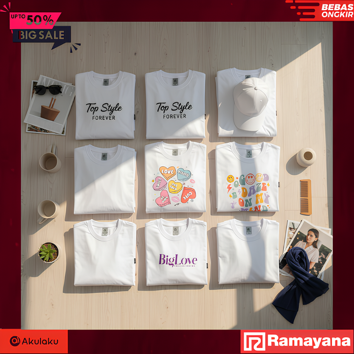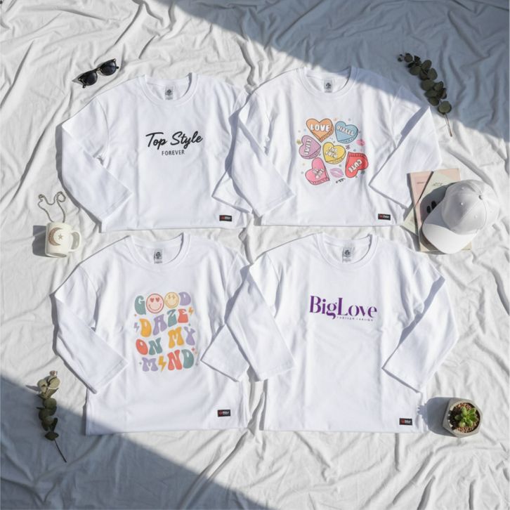 Baju Atasan Wanita Oversize 7/8 Edisi Warna Putih Kaos Basic Cotton Combed 24s tebal