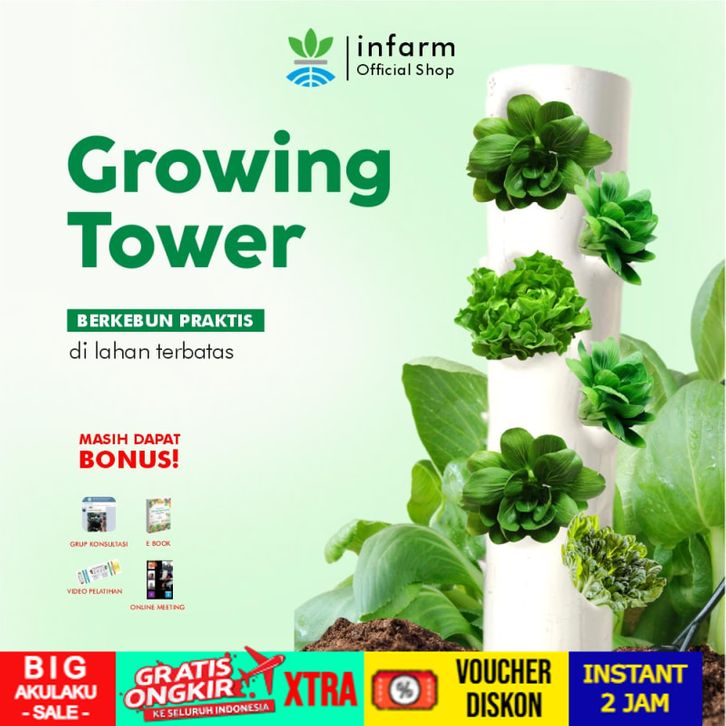 TANPA DP INFARM - Growing Tower Tanah Vertikultur Vertikal Garden Paralon 50 cm Bahan PVC Premium 12 Lubang TERLARIS