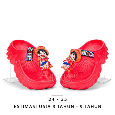 Sandal Anak LAki-laki Luffy Kamifa Cute Slippers | Sandal Karakter Lucu Anti Slip Ringan Empuk Kids Size 24-35