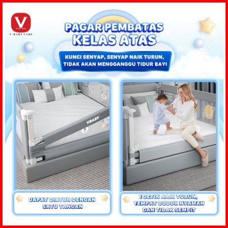 V-baby Care Babybedrail Baby Bed Rail Safety Guard Bedguard Fence Extra Tall Pembatas Pengaman Pagar Kasur Bayi Tempat T