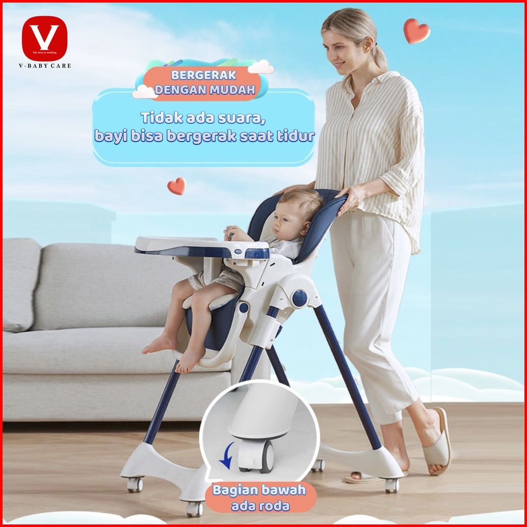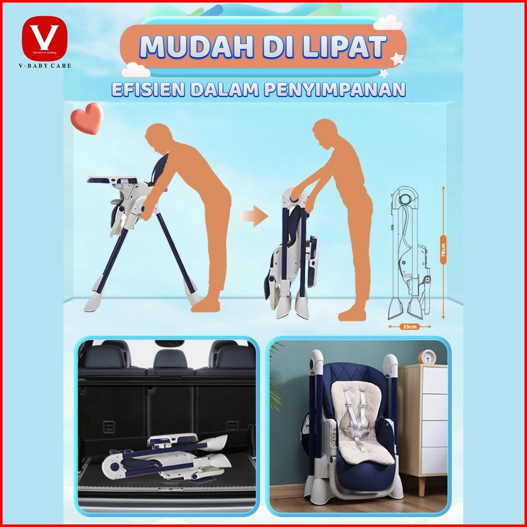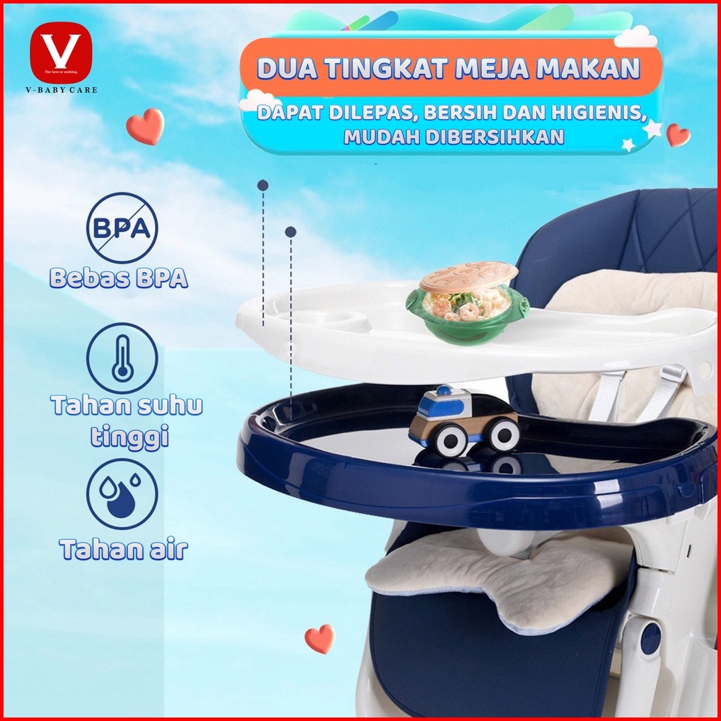 V-baby Care Kursi Makan Bayi Bayi Rumah Tangga Anak Multifungsi Meja Makan Kursi Makan Lipat Duduk Dan Berbaring Safety