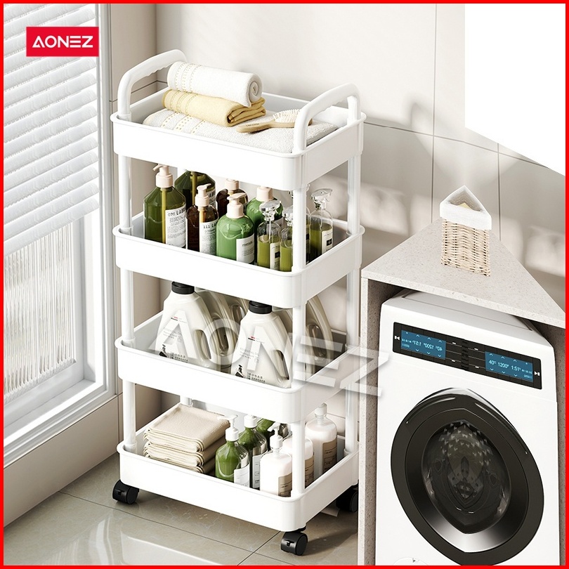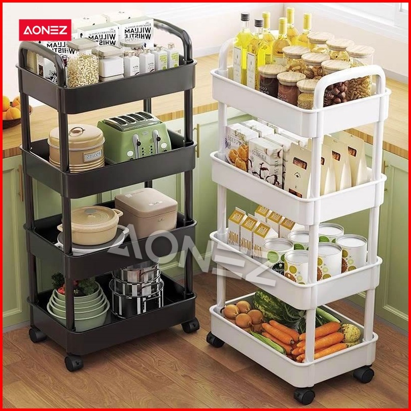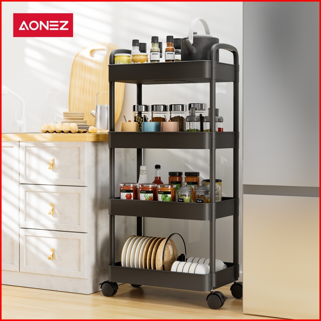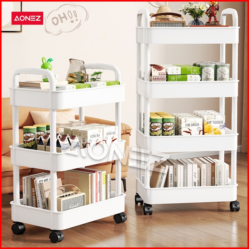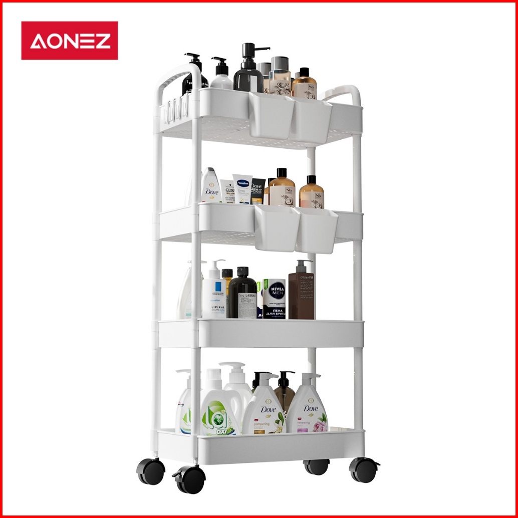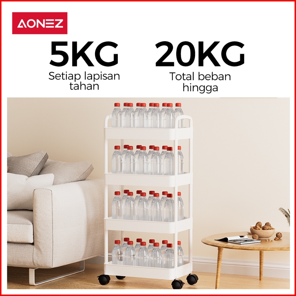 Aonez Rak Serbaguna 4 Tingkat Untuk Ruang Tamu - Tempat Penyimpanan Multifungsi Dengan Roda 360