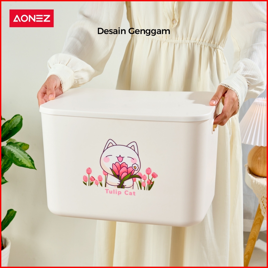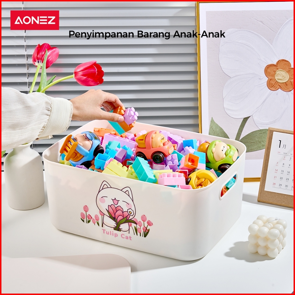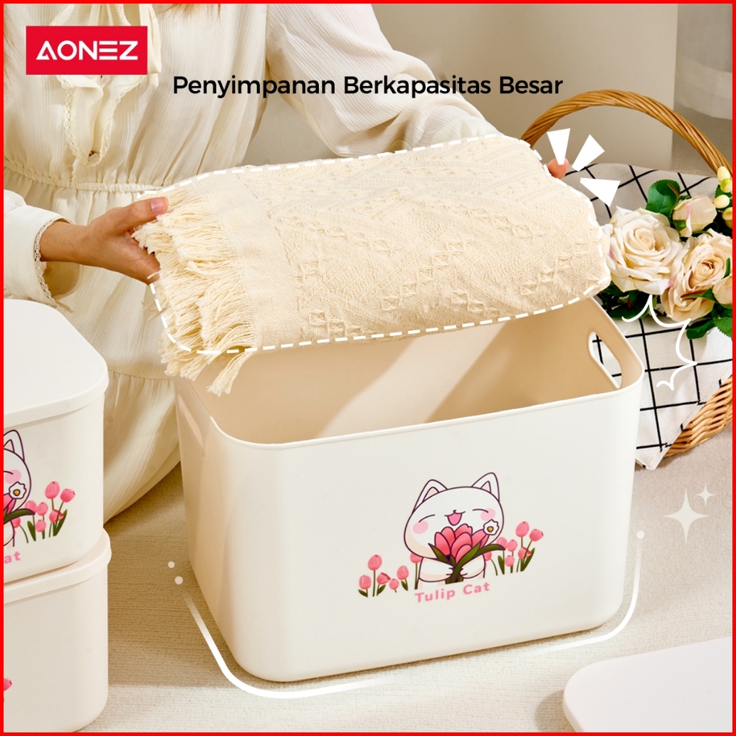 Aonez Tulip Cat Kartun Stroge Box Container Box Kotak Penyimpanan Pakaian Mainan Plastik Kotak Penyimpanan