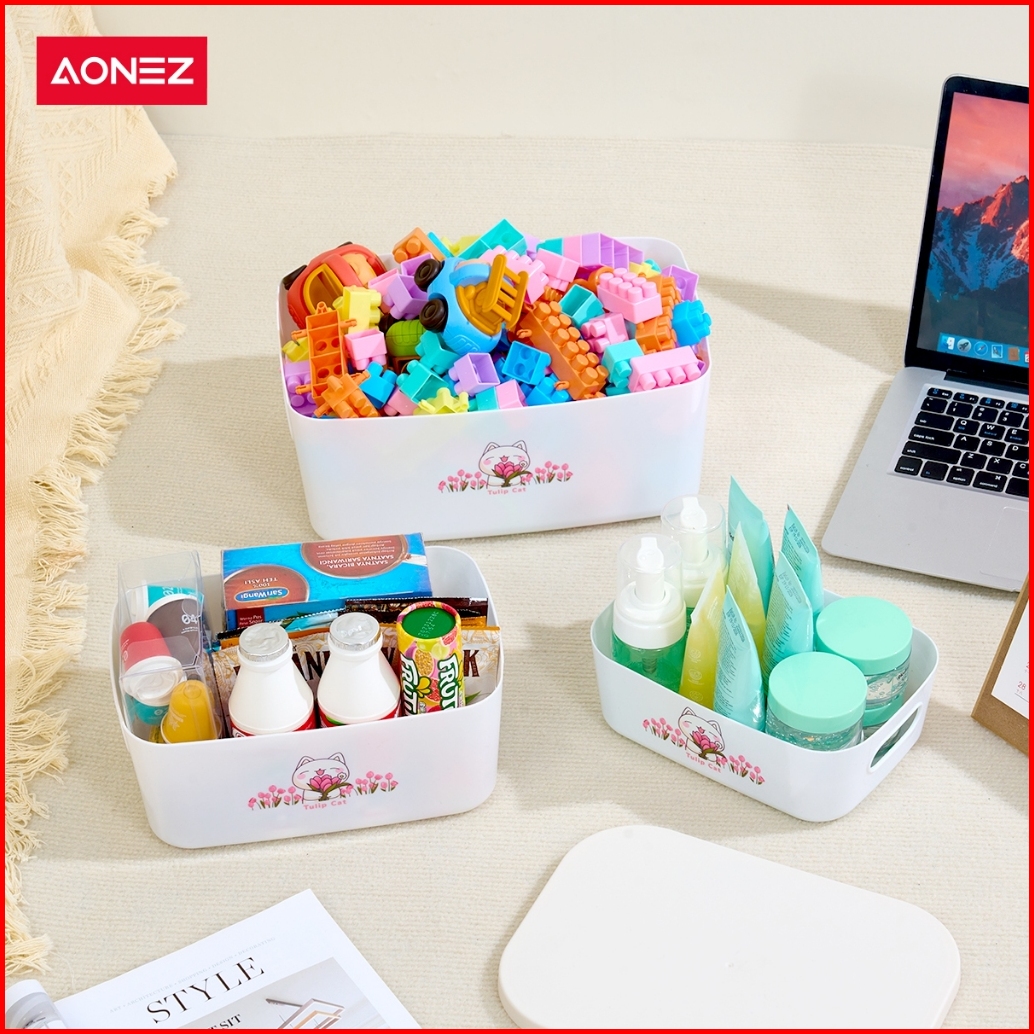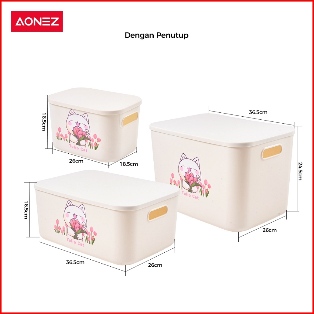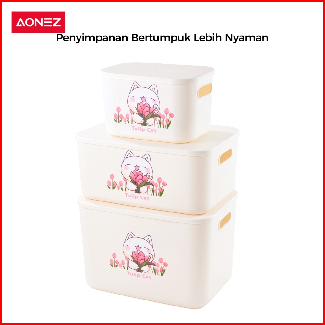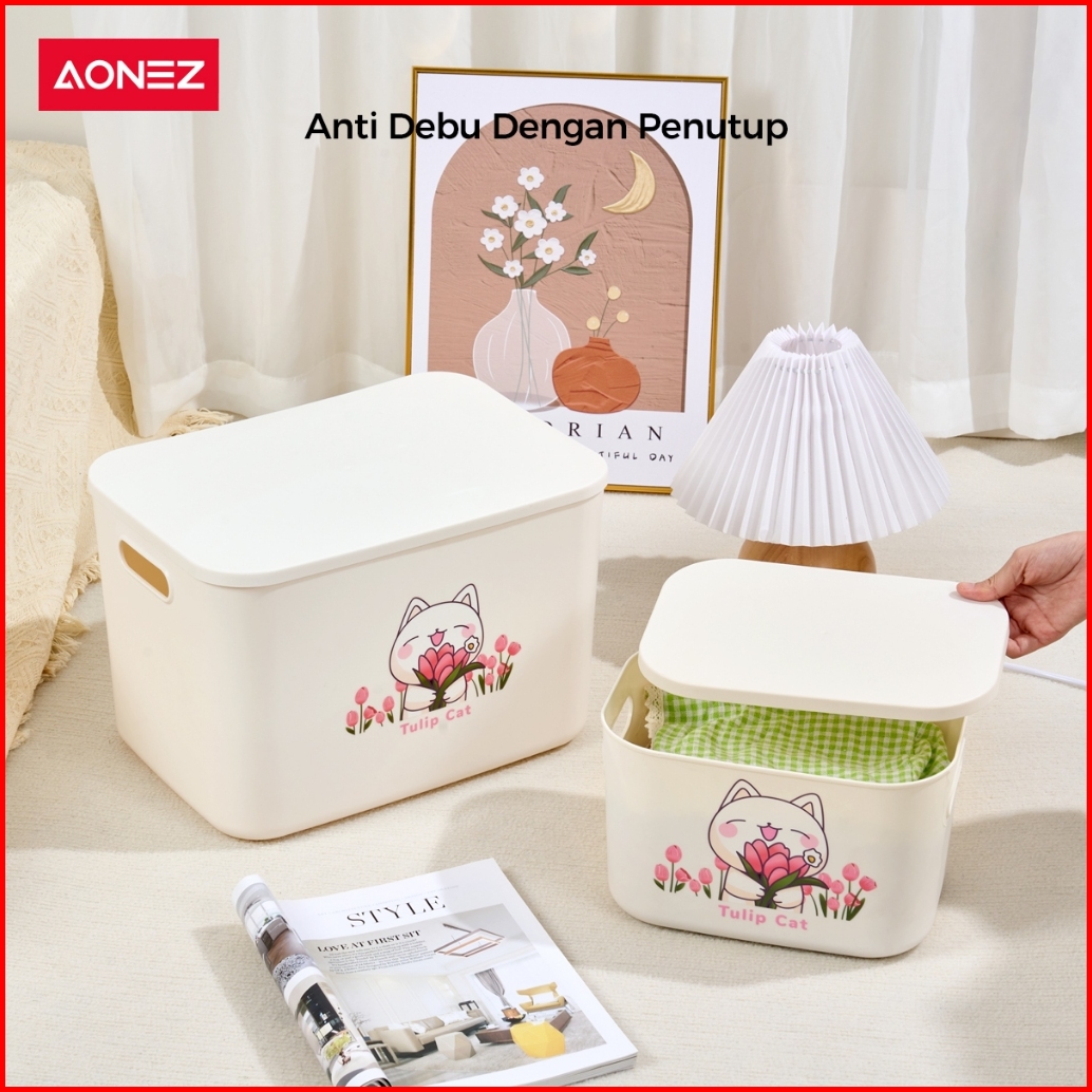 Aonez Tulip Cat Kartun Stroge Box Container Box Kotak Penyimpanan Pakaian Mainan Plastik Kotak Penyimpanan