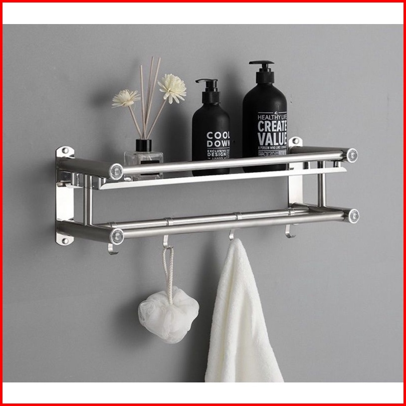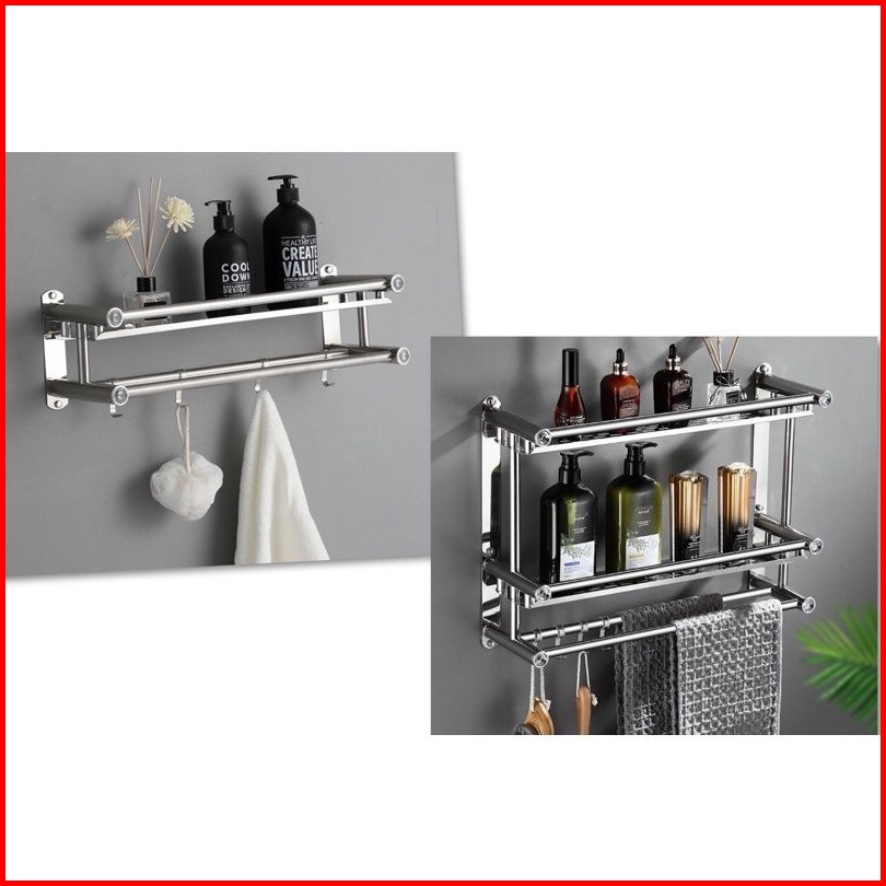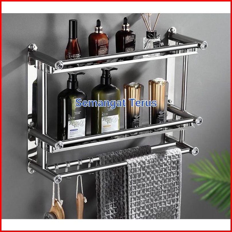 Rak Kamar Mandi Stainless Steel Toilet Handuk Shampoo Sabun Sikat Gigi