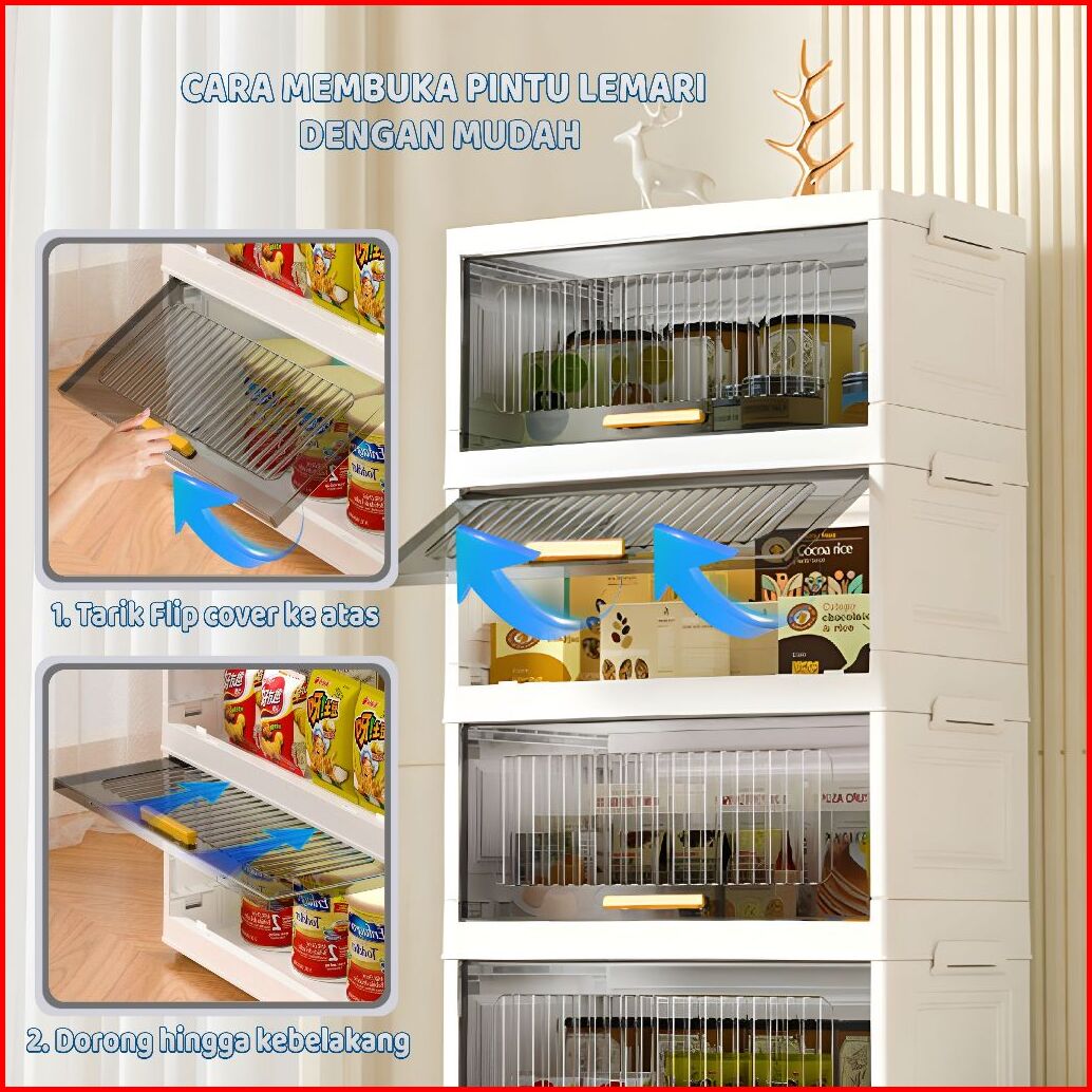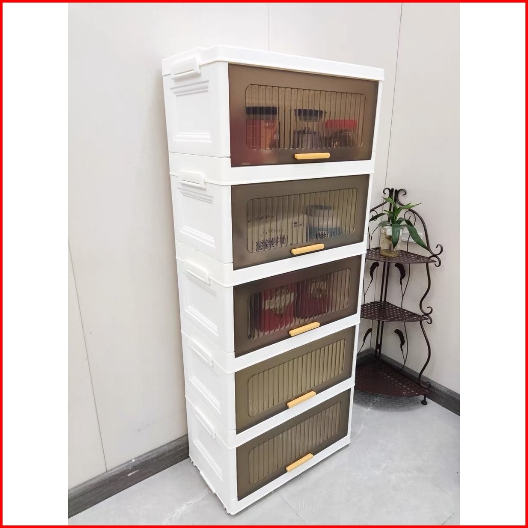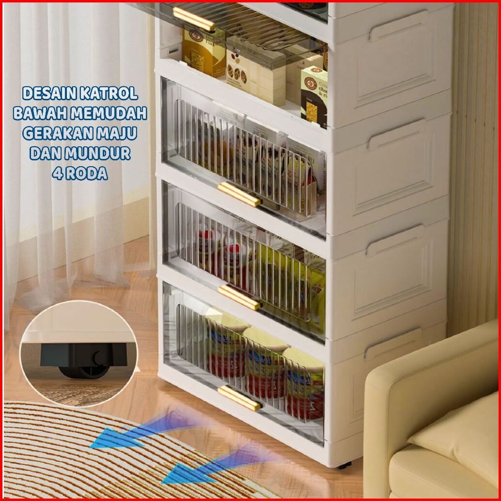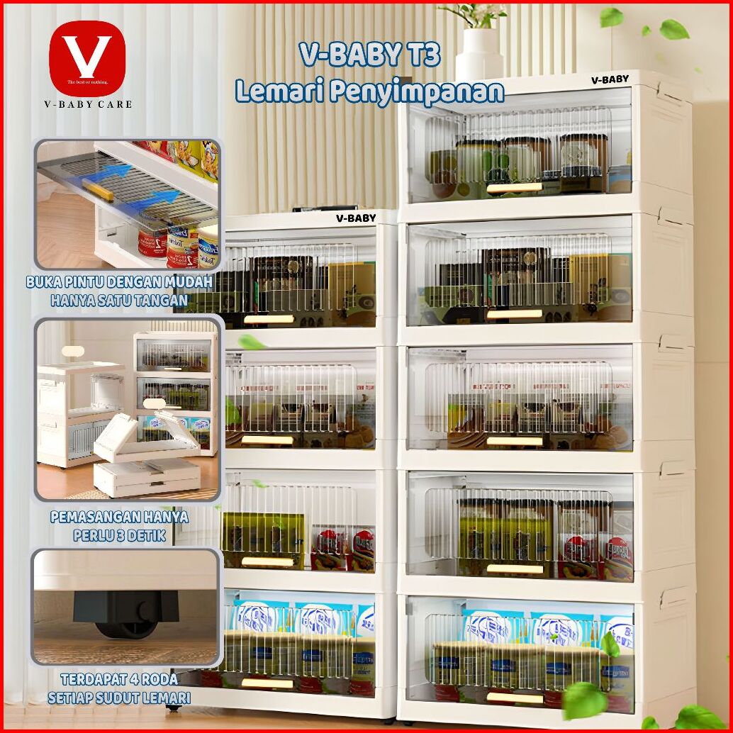 V-baby Care Tidak Perlu Instalasi Rak Kabinet Susun Lipat Rak Buku Serbaguna Ada Roda Lemari Plastik Lipat Susun T3
