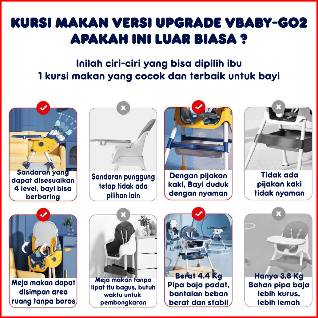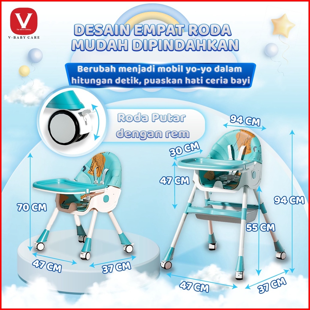 V-babycare Kursi Makan Bayi Kursi Makan Balita Baby Chair Multifungsi Vbaby- G02
