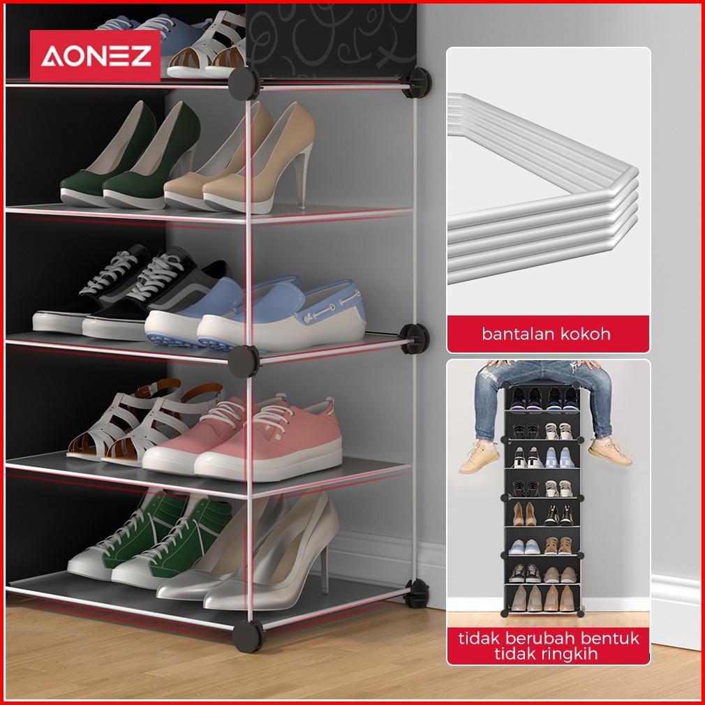 Aonez Rak Sepatu Susun Lemari Rak Sepatu 12 Layer Anti Debu Tebal Shoe Rack Portable Rak Sepatu Pakain Serbaguna Kotak S