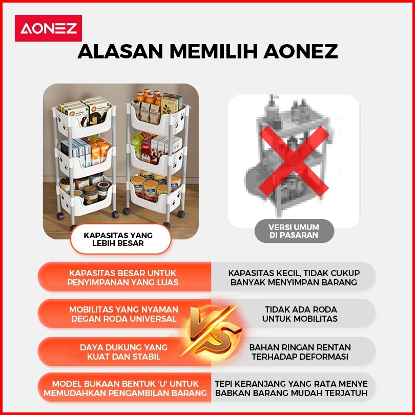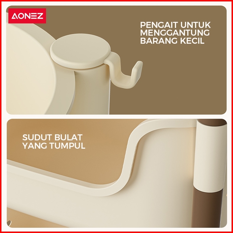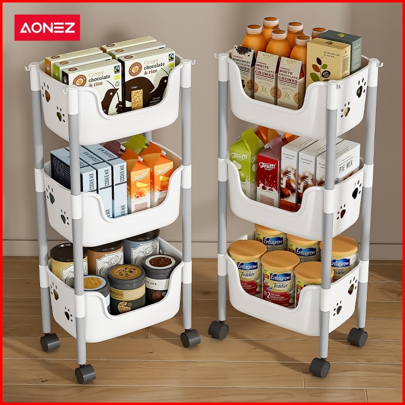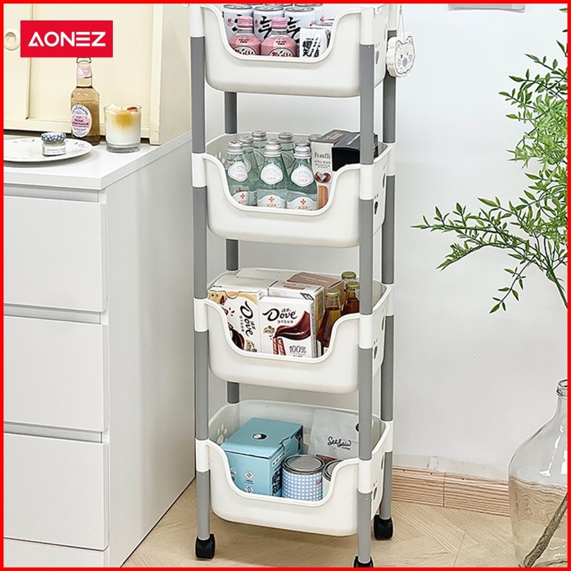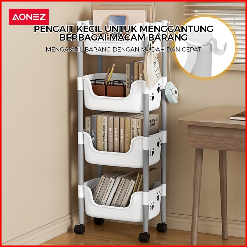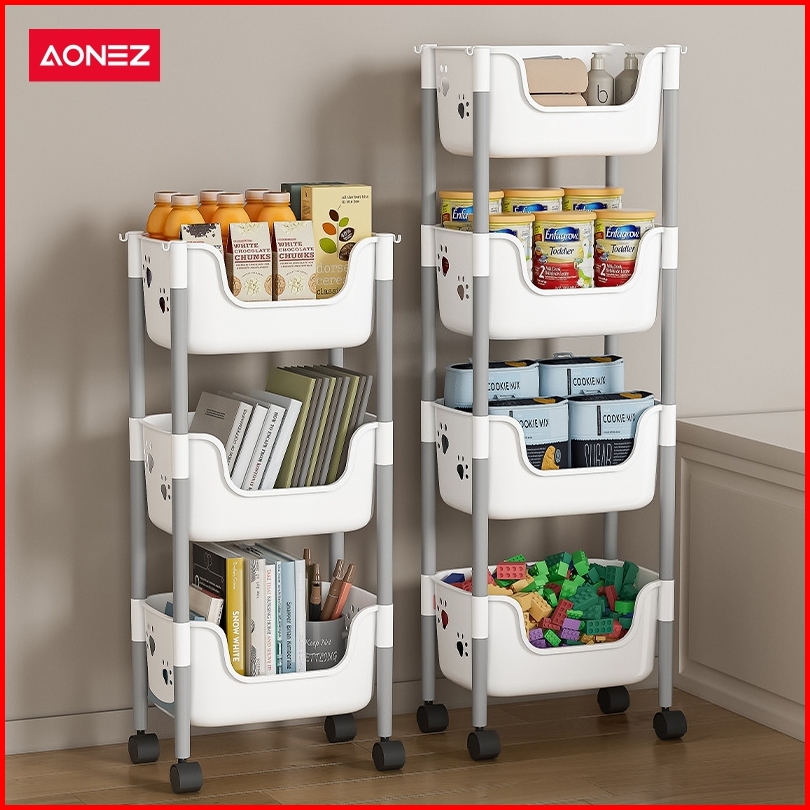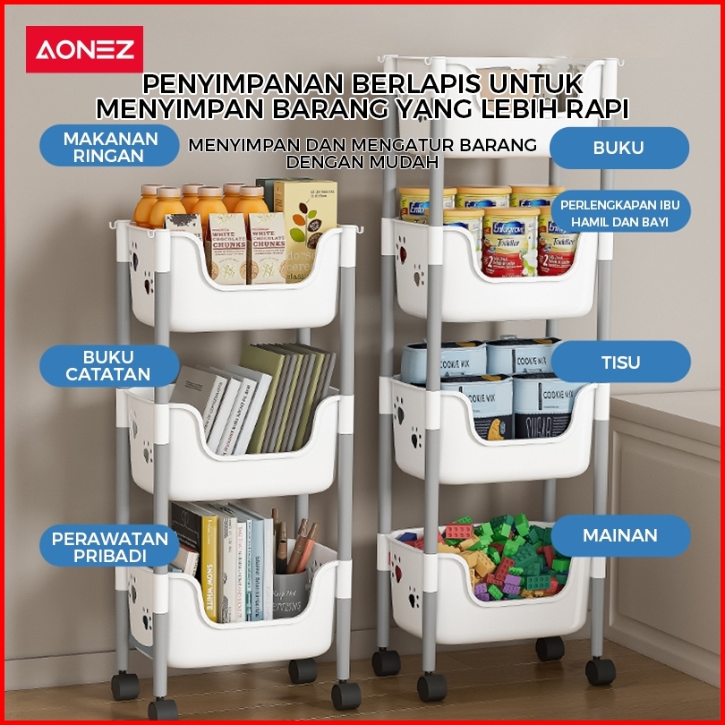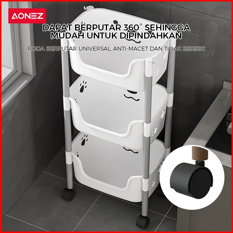 Aonez Rak Penyimpanan Troli Keranjang Tinggi Kartun Beruang Abu-abu 4 Keranjang