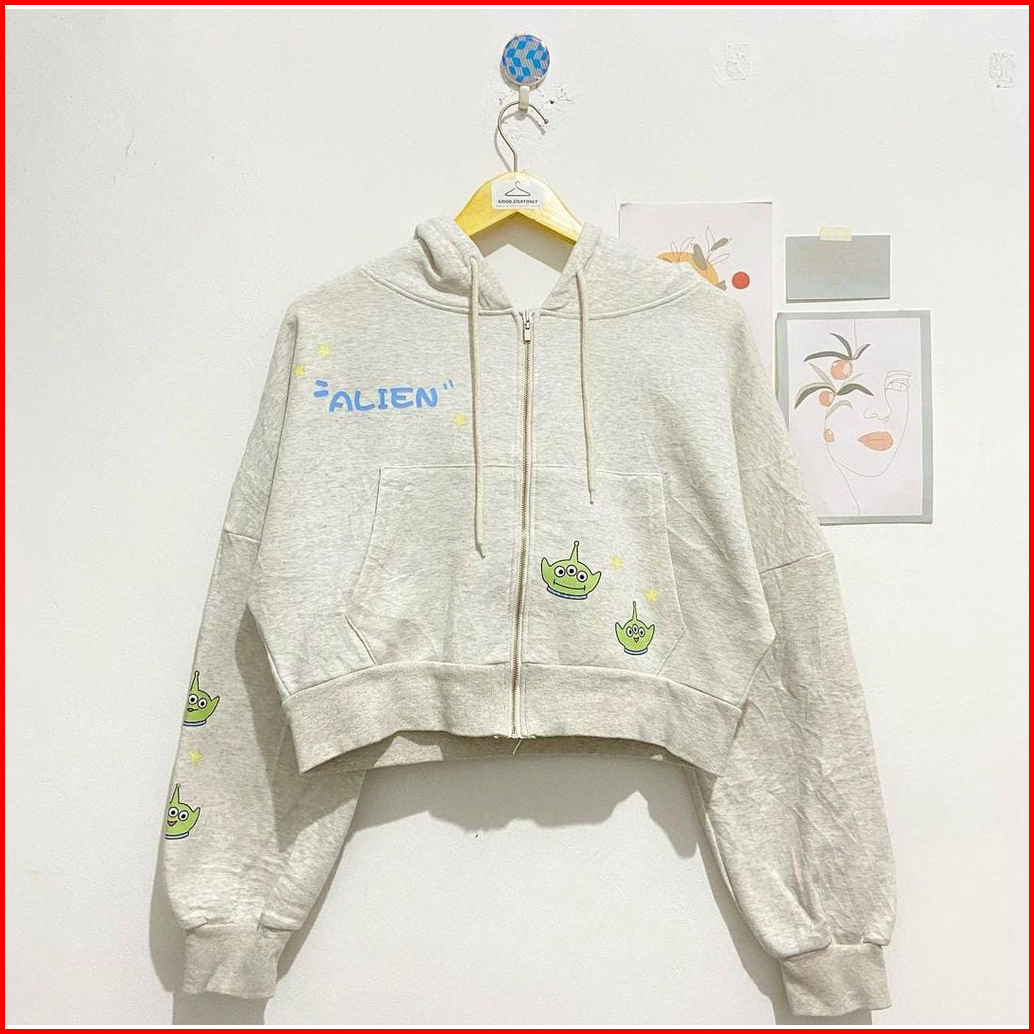 Hoodie Alien Crop Premium Jaket Sweater Hodie Zipper Wanita Kekinian Fashion Outfit Ootd Korean Style Suiter Krunek Jack