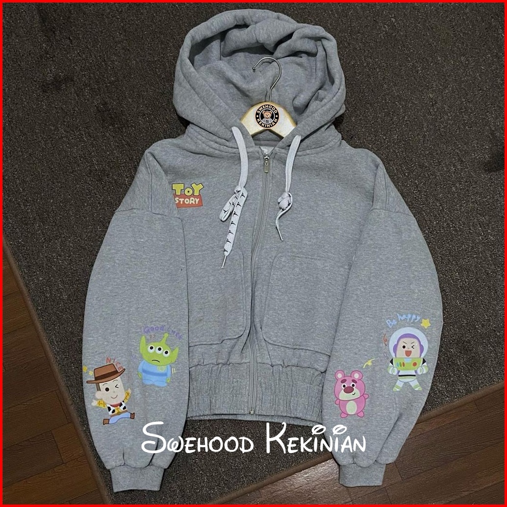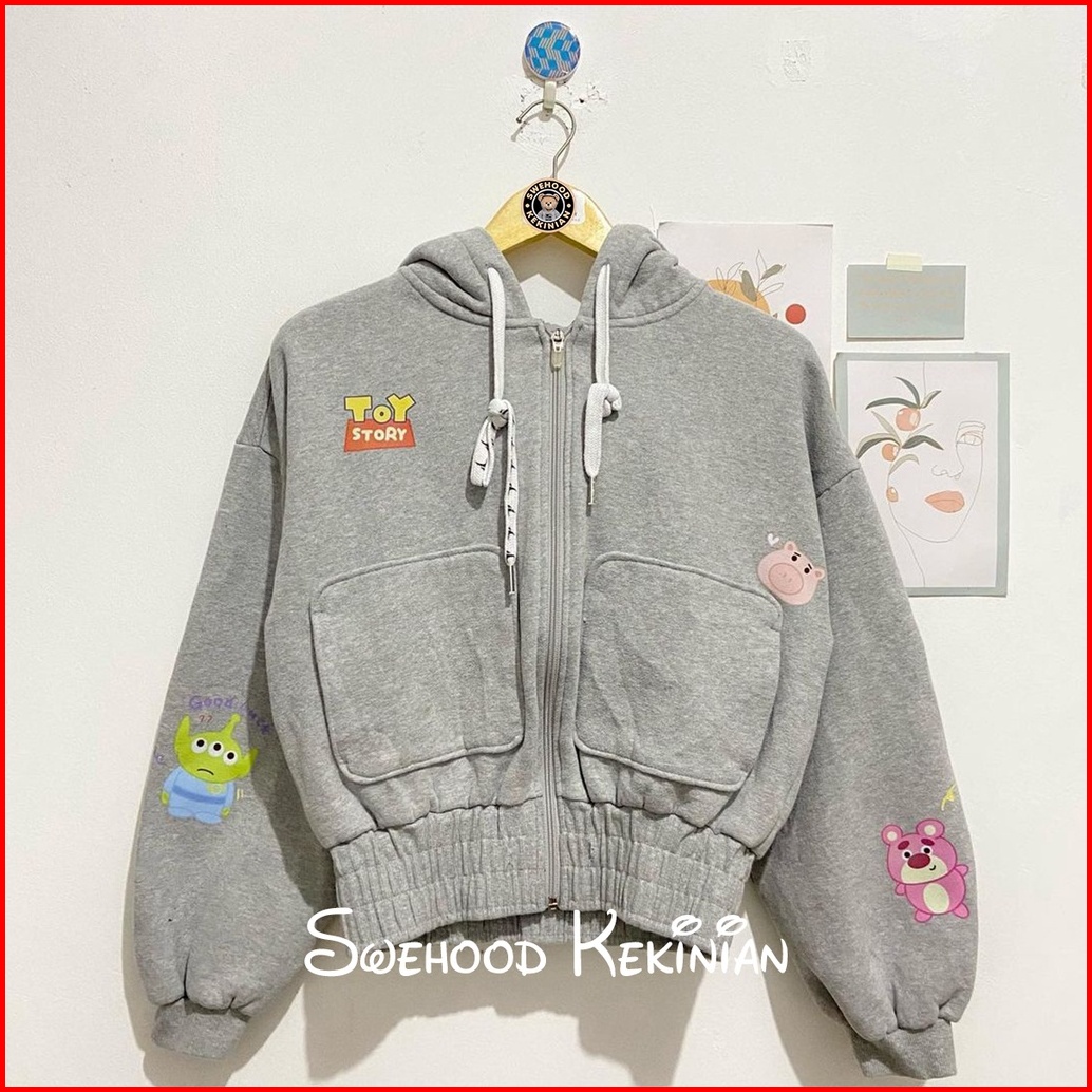 Toy Story Crop Kerut Hdzip Premium Sweater Hoodie Crewneck Zipper Fashion Outfit Sweatshirt Ootd Baju Atasan Wanita Keki