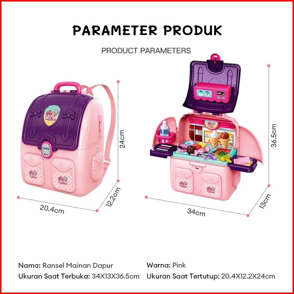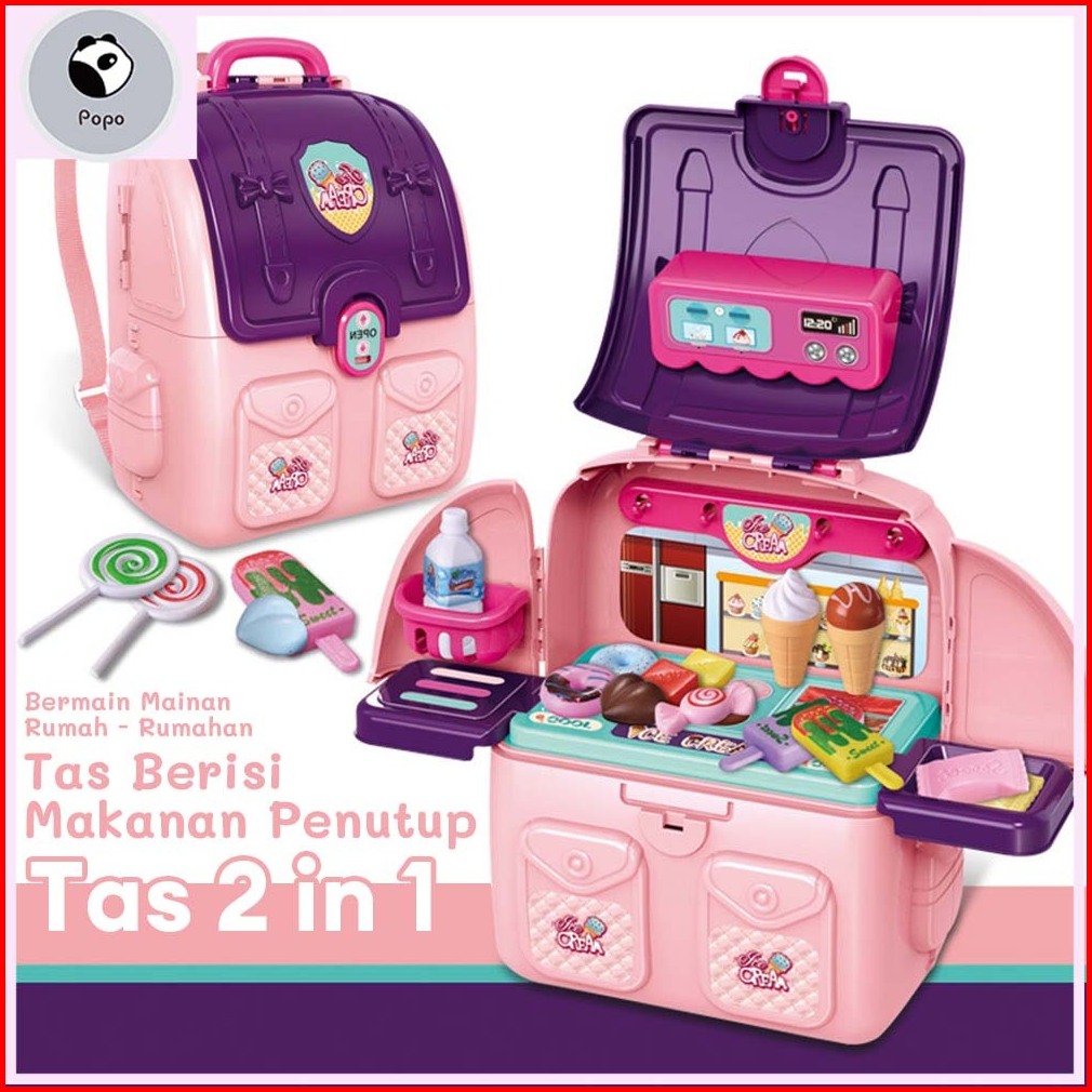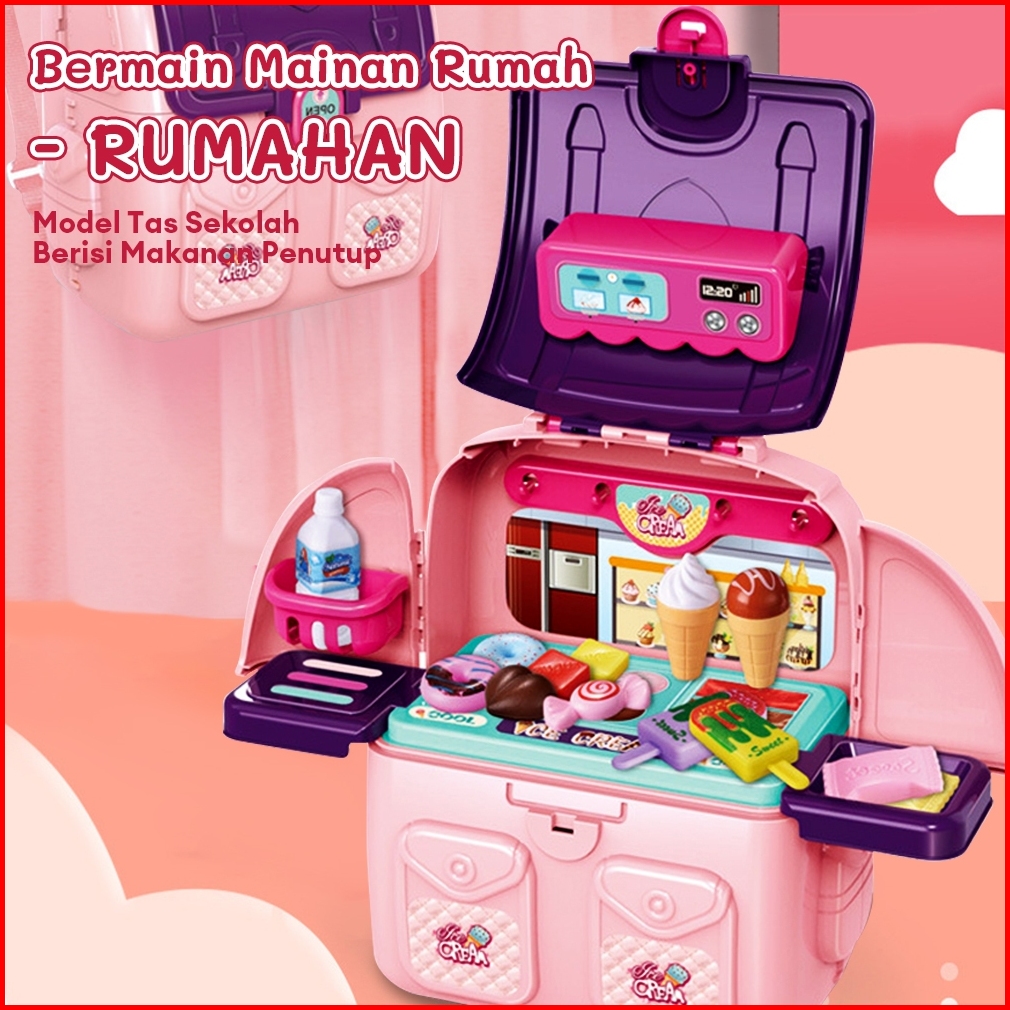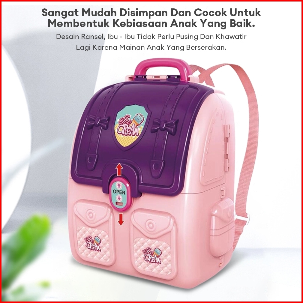 Mainan Masak Masakan Ice Cream Backpack Anak Perempuan Set 2 In 1 Edukasi Bermian Mainan Rumah
