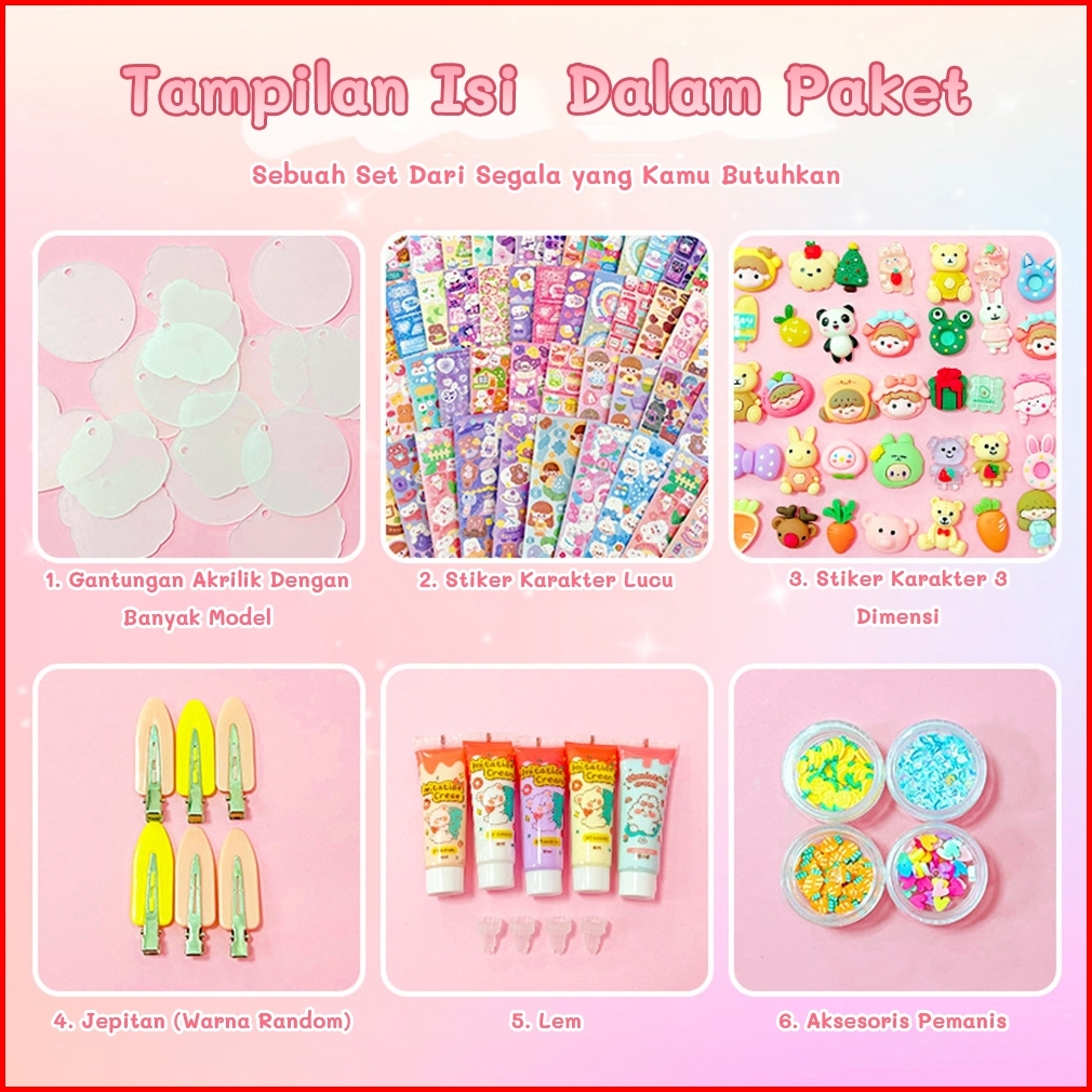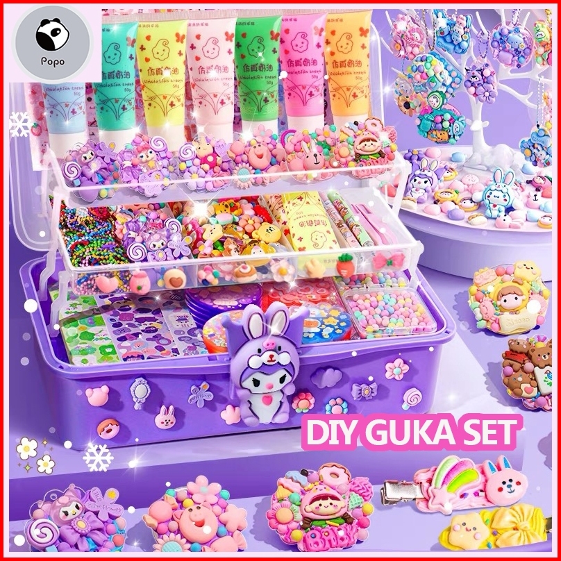 Popo Diy Guka Set Gantungan Kunci Akrilik Diy Keychain Set Kartu Stiker Luca Kotak Guka Cream Gum Kartun Mainan Diy Anak