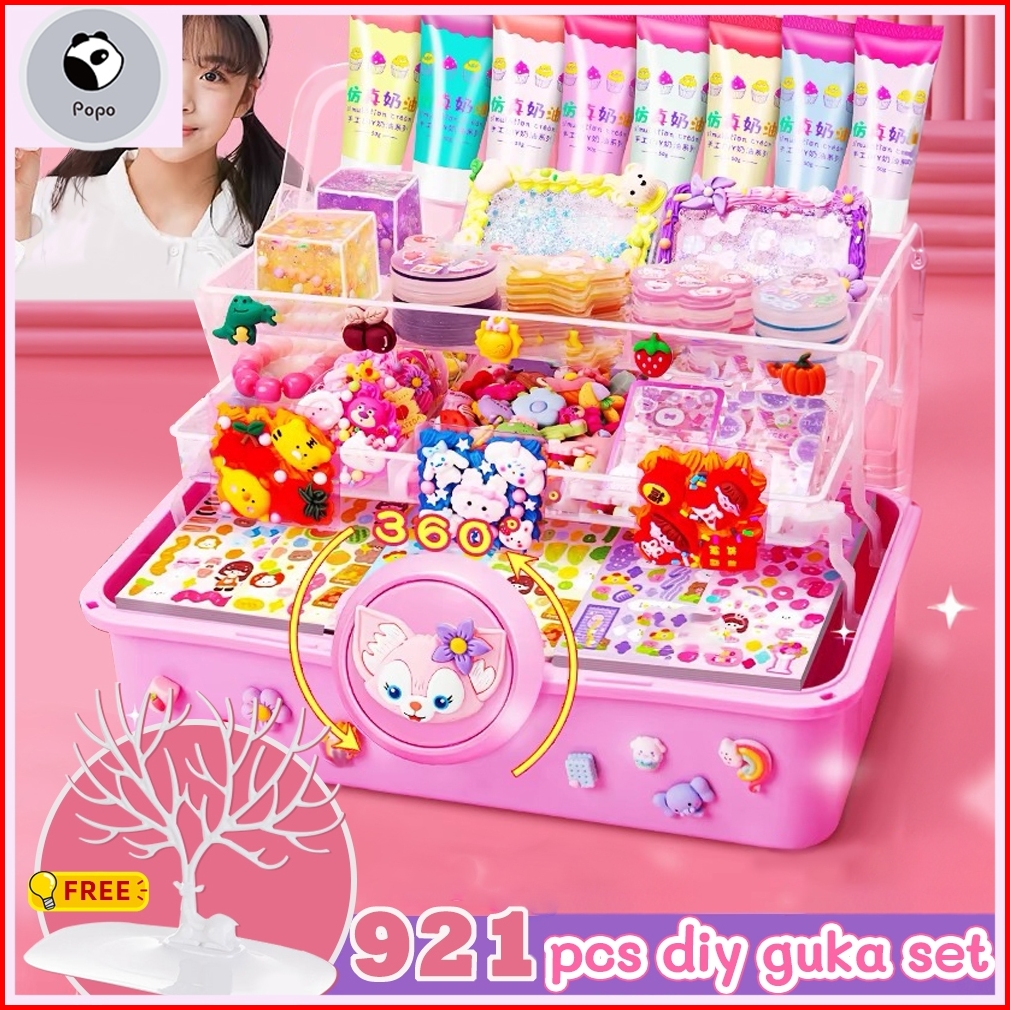 Hadiah Gratis 921pcs Diy Guka Set Diy Gantungan Kunci Set Gooka Mainan Anak Perempuan Hadiah Ulang Tahun Anak Kartu Stik