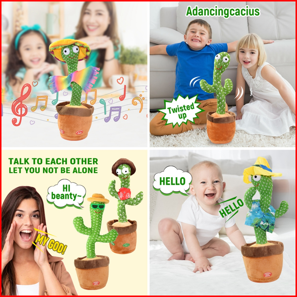 Adida Toys 5in1 Cactus Toy Boneka Pintar Kaktus Dancing Cactus Mainan Boneka Goyang Kaktus Peniru Suara