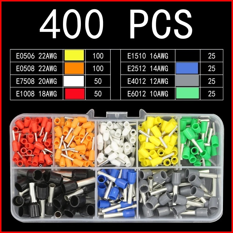 Skun Insulated Ferrules Terminal Block Connector 400 Pcs E0506 Hingga E6012