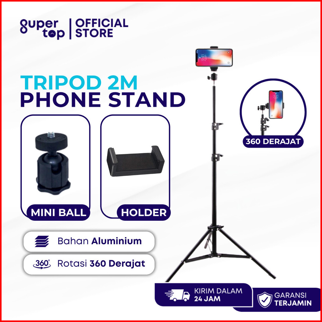 Tripod Hp 2 Meter Besi Aluminium Alloy - Stand Tripot Handphone Free Holder Miniball 360 Derajat