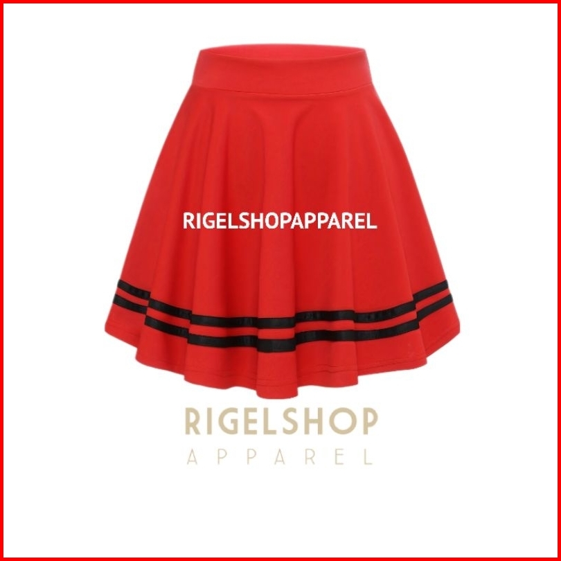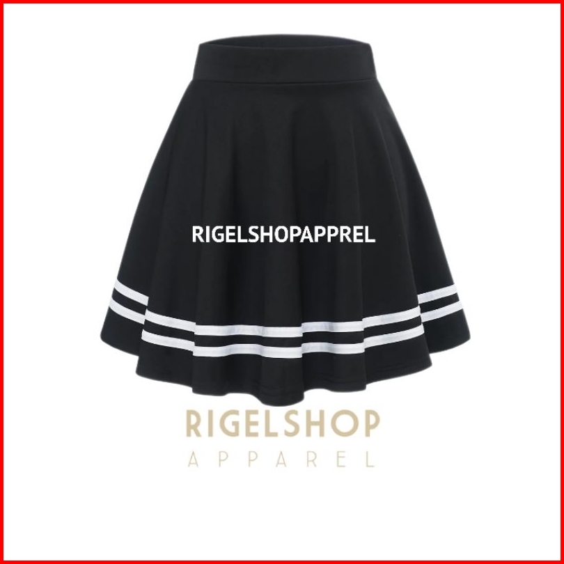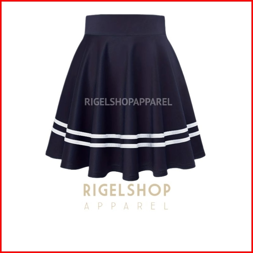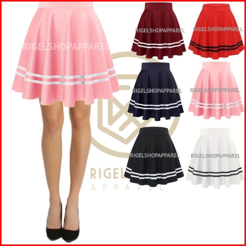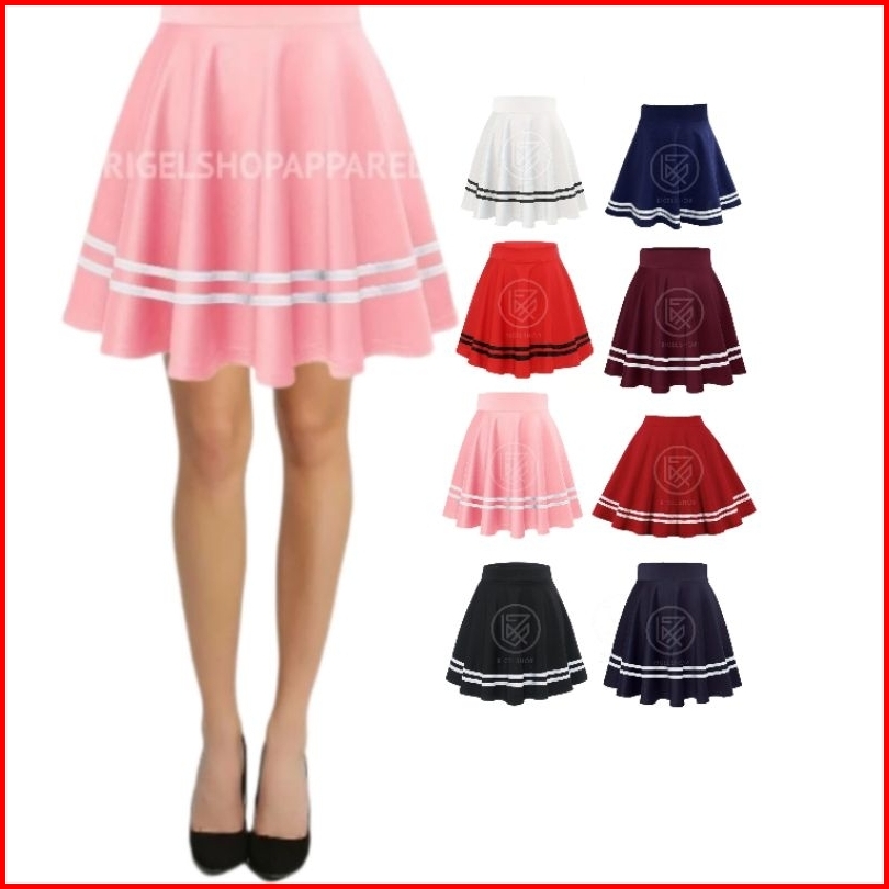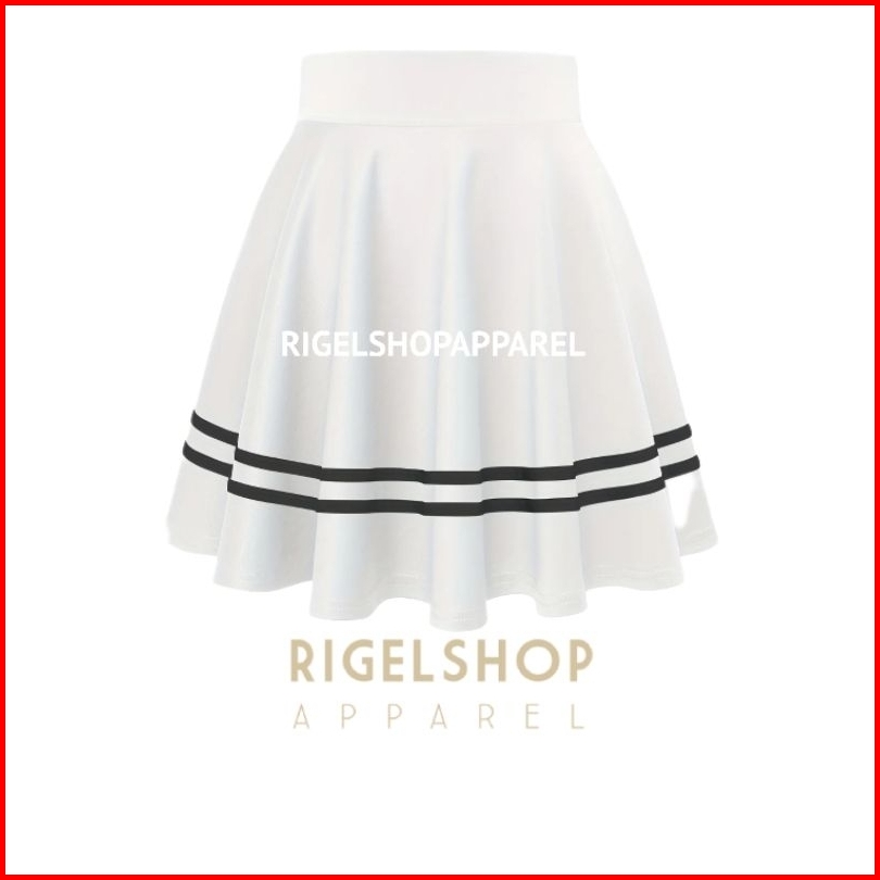 Rok Mini Olahraga Outdoor Wanita Kasual List Strip Putih Bahan Scuba