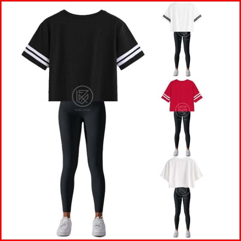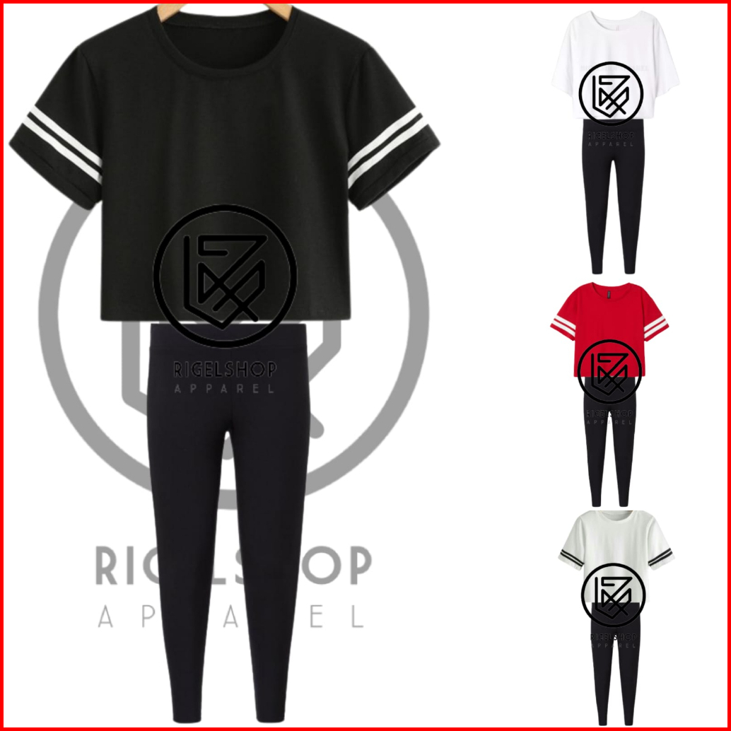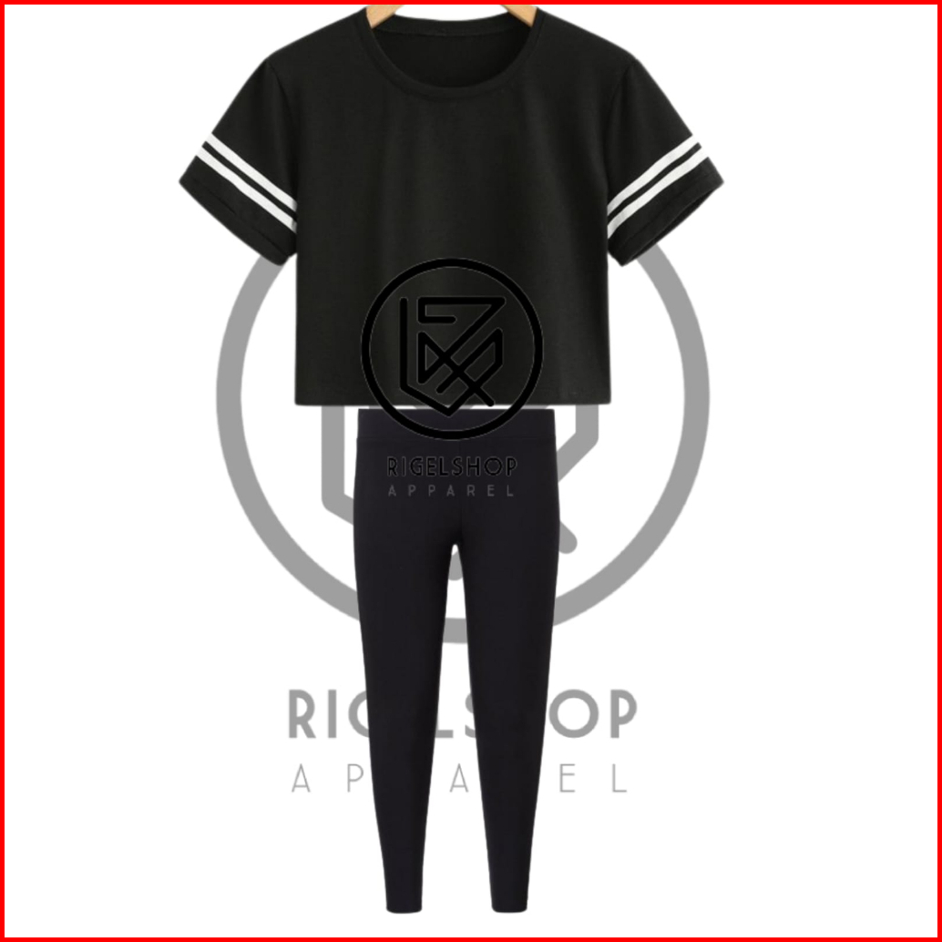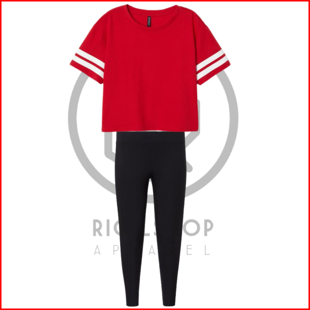 Setelan Crop Top Oversize Legging Panjang Olahraga Wanita