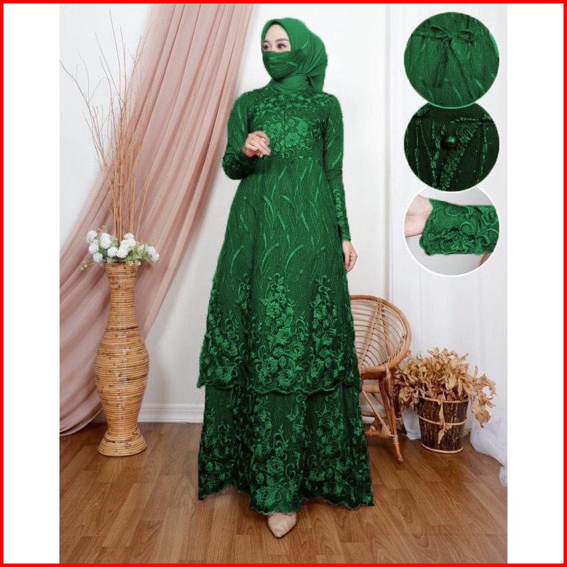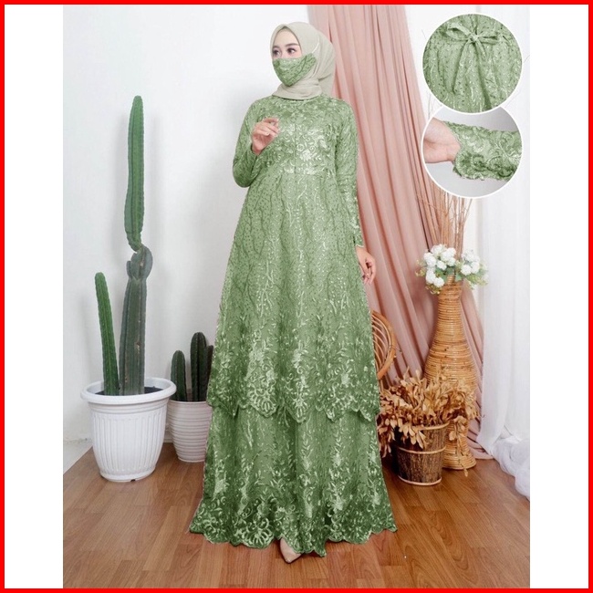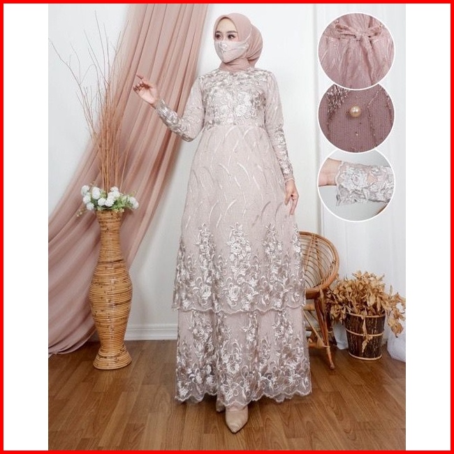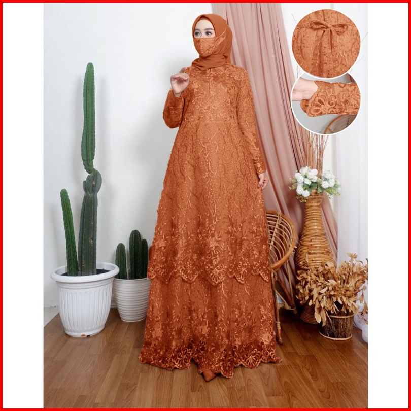 Davira New Product Dress Susun Full Brukat Free Masker Busui Friendly Gamis Pesta Kondangan Bridesmaid Tille Mewah