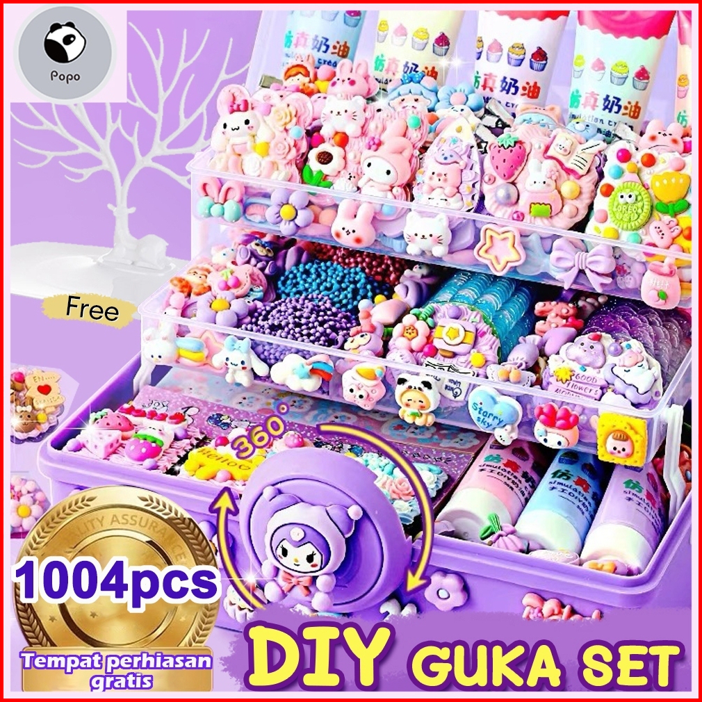 Hadiah Gratis 1004pcs Diy Gantungan Kunci Guka Set Diy Keychain Set Kartu Stiker Luca Kotak Guka Cream Gum Kartun Mainan