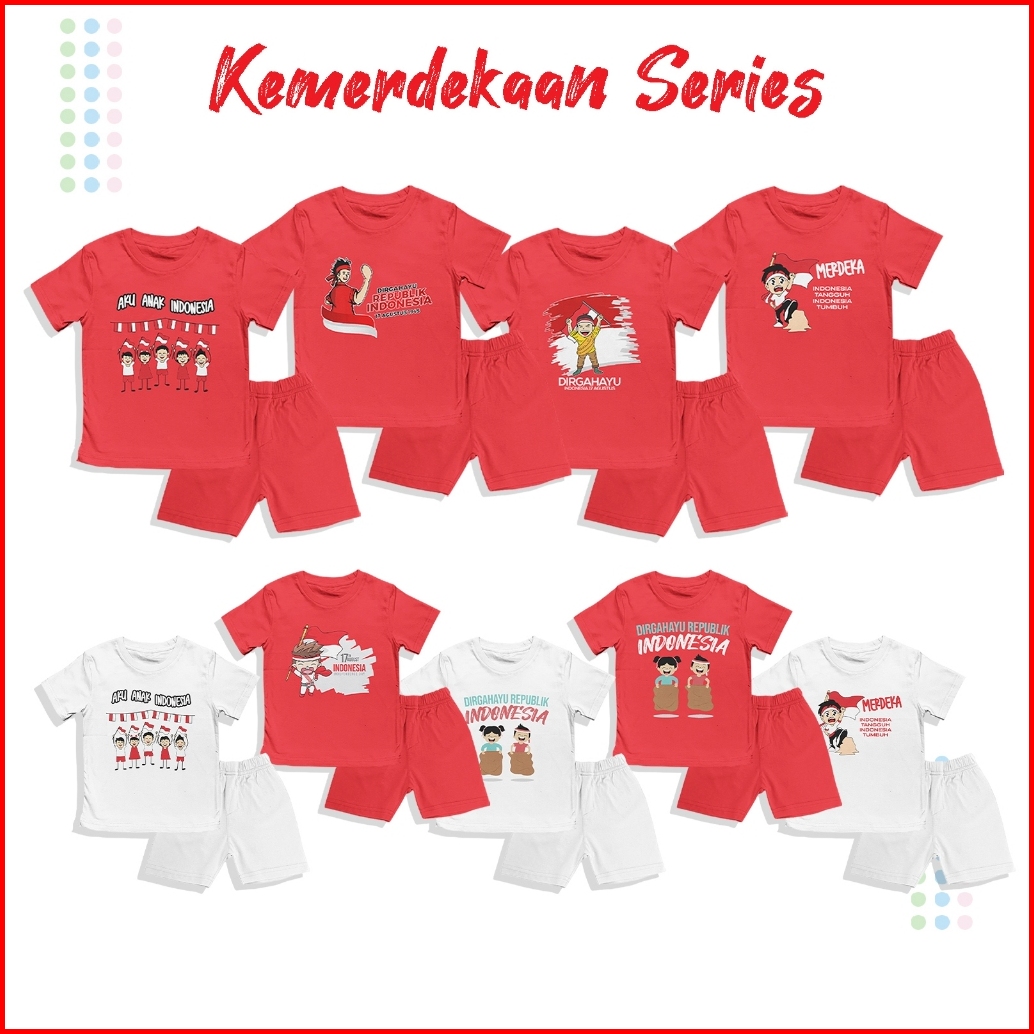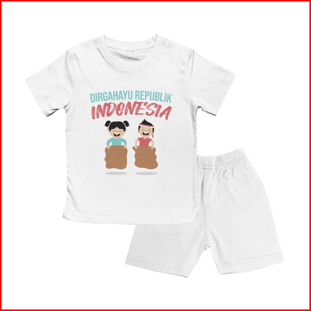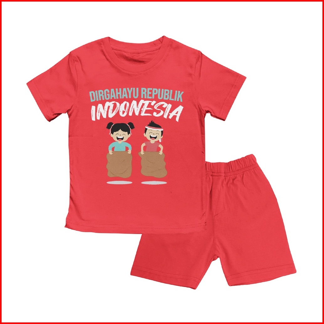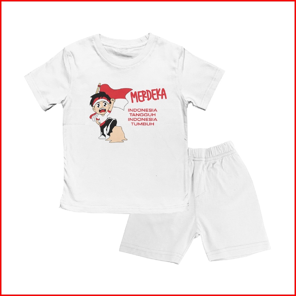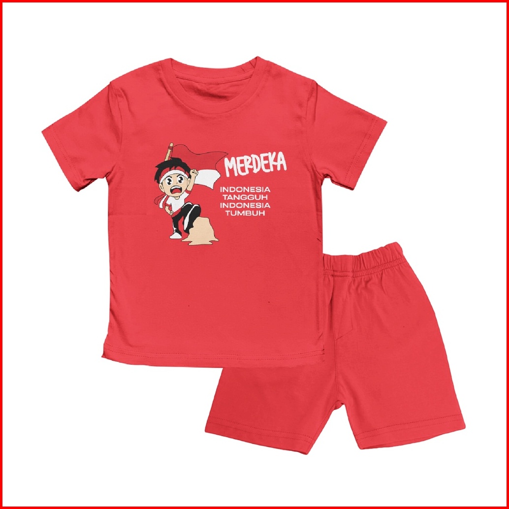 Setelan Kaos Agustusan Anak Laki-laki Dan Perempuan Unisex Motif Kemerdekaan Indonesia