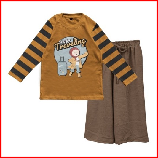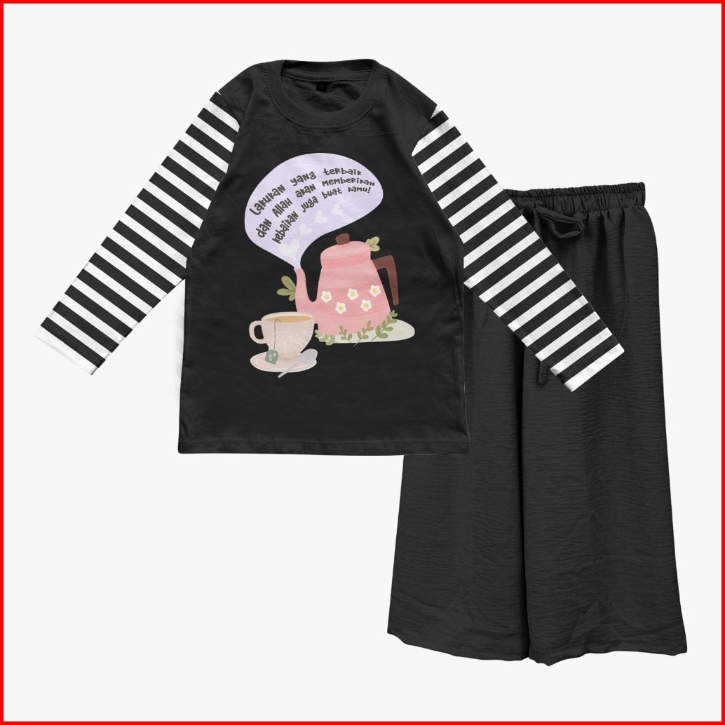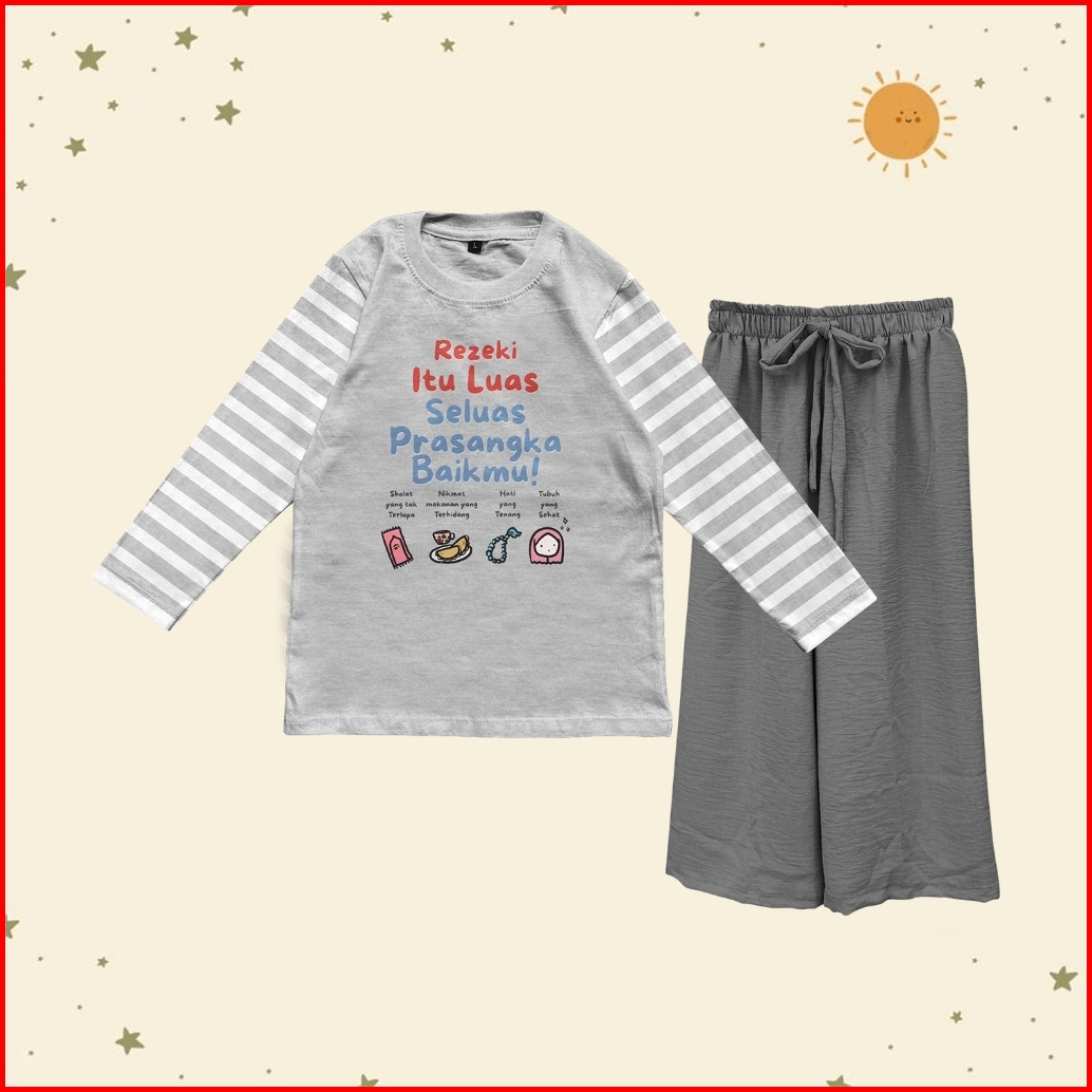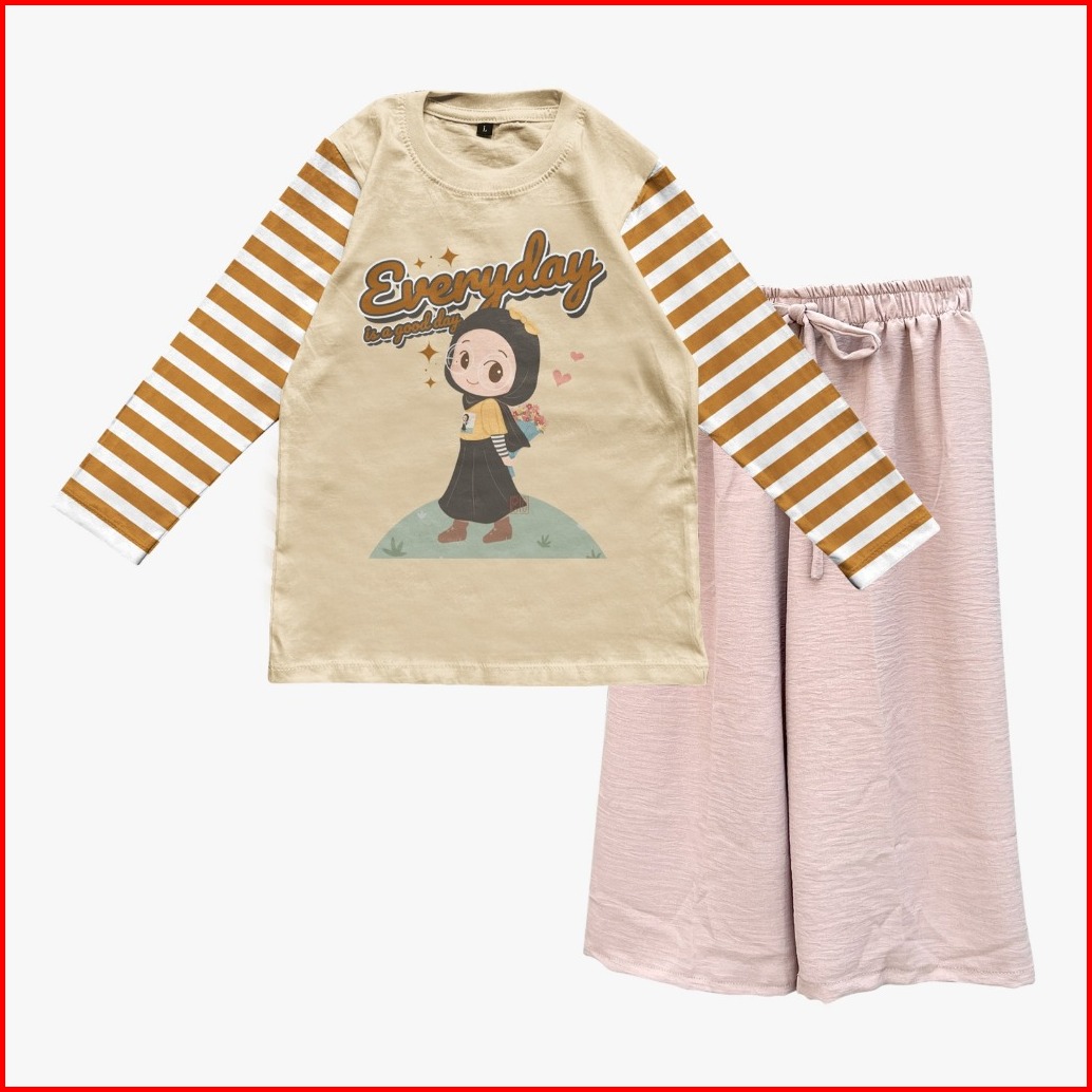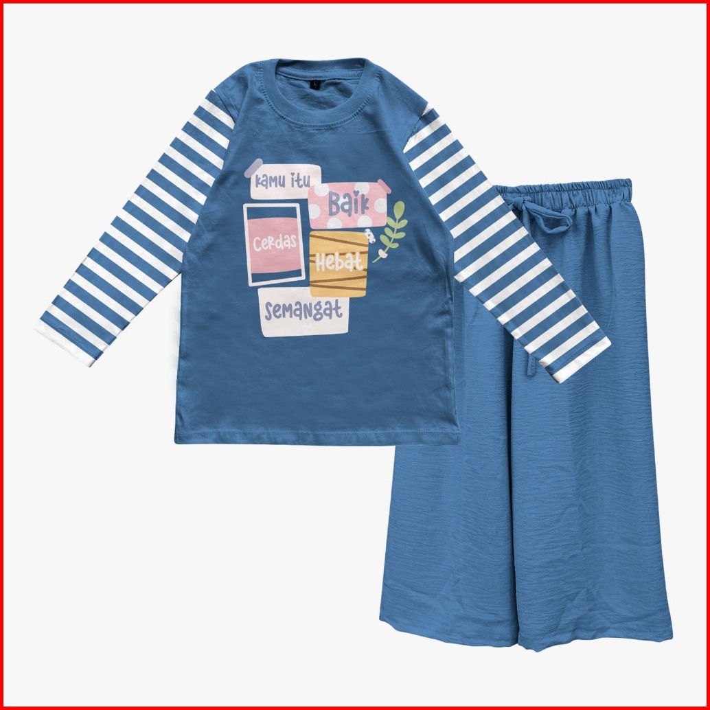 Setelan Muslimah Anak Perempuan Lengan Stripe Kulot