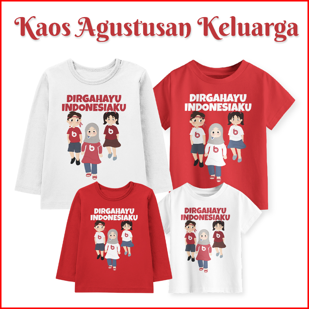 Kaos Couple Family Agustusan Anak Dan Dewasa Motif Balap Kelereng Warna Merah Putih