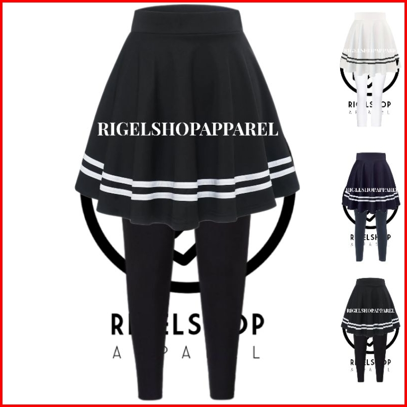 Rigel Rok Legging Stripe Putih Olahraga Kekinian