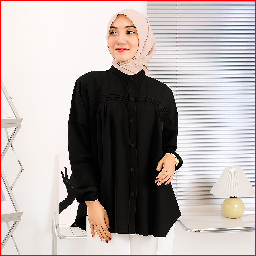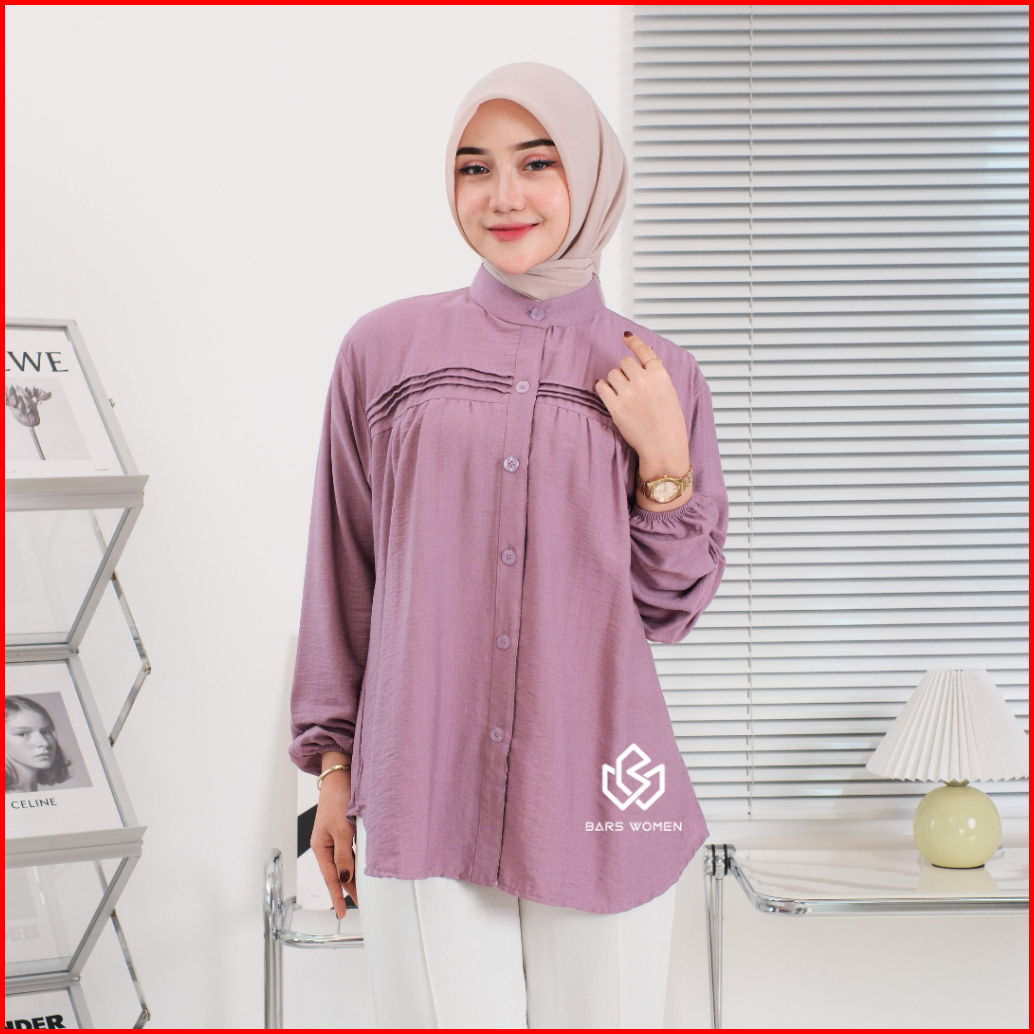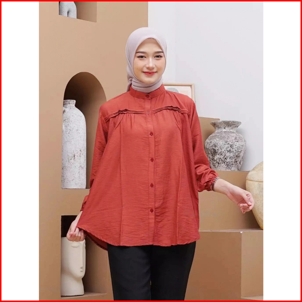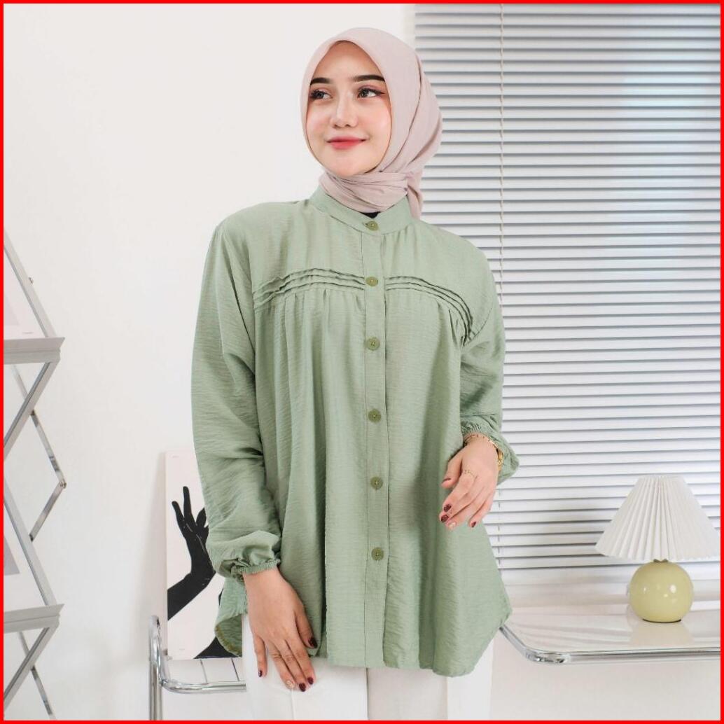Aryani Blouse Kemeja Wanita Bahan Polo Linen Atasan Wanita Full Kancing