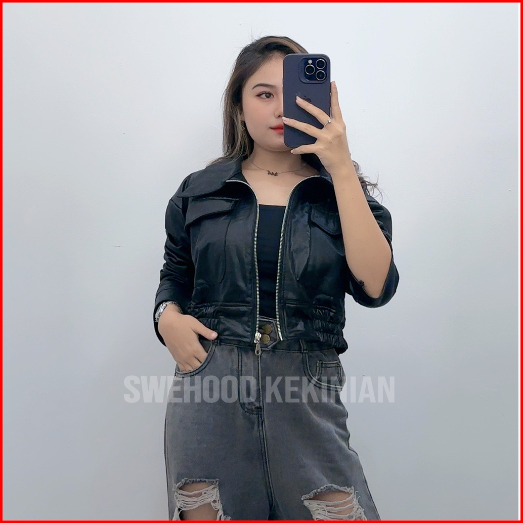 Xienna Pocket Metalic Zipper Premium Jacket Elegant Wanita Kekinian Fashion Outfit Ootd Kortean Style Jaket Cewek Remaja