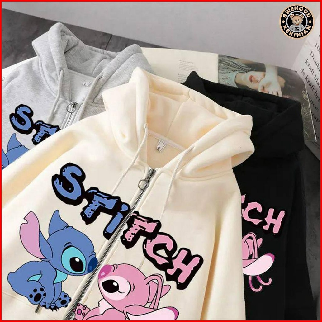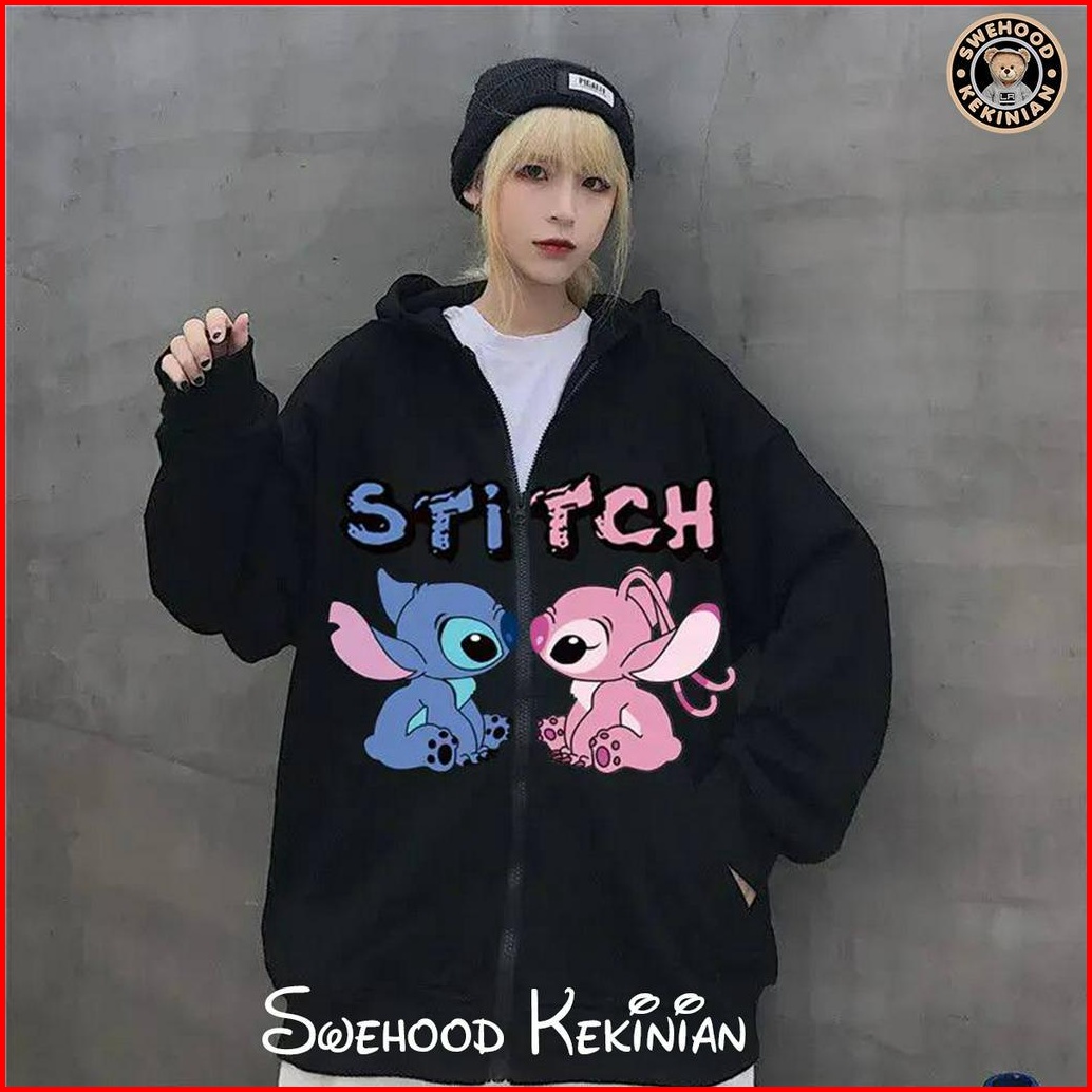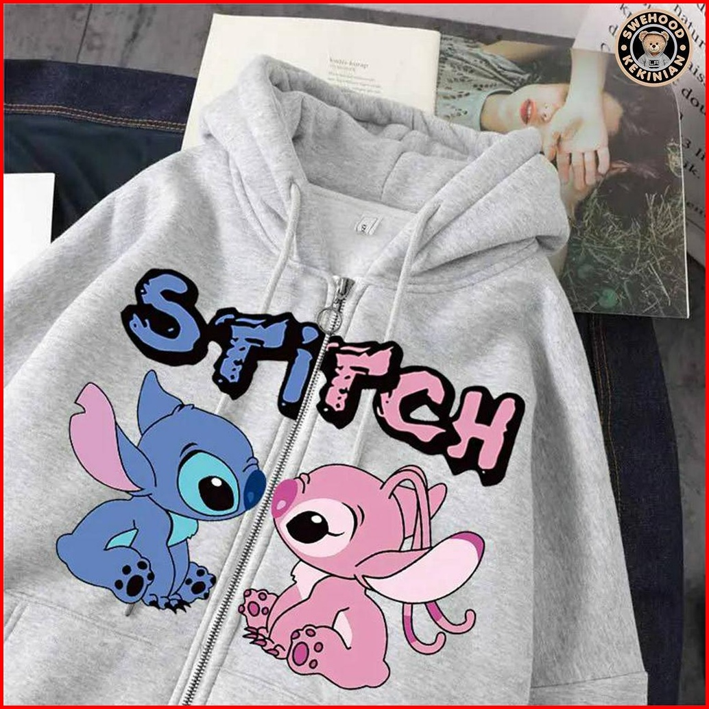 Stitch Gemoy Zipper Premium Jacket Crewneck Sweater Hoodie Wanita Kekinian Oversize Fashion Outfit Ootd Korean Style Jak