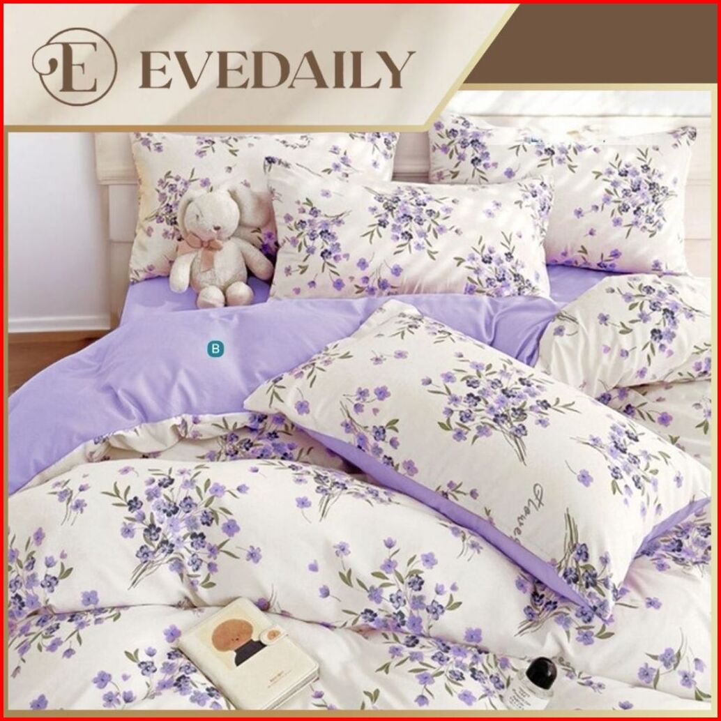 Bed Cover Set Motif Feleti Mix Plain Lylac - Ukuran Lengkap Bisa Custom - Evedaily