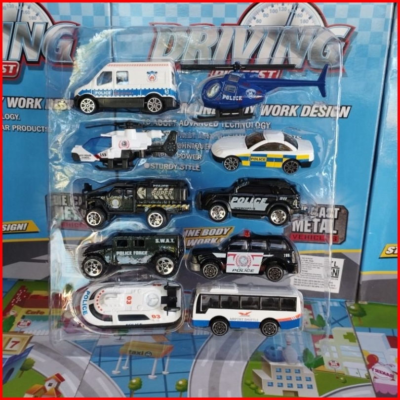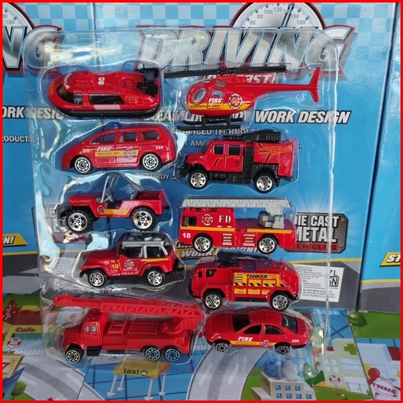 Mainan Mobil Diecast Set 10lcd Pemadam Kebakaran Fire Rescue Police Dan Tentara Military Termurah Mainan Koleksi Edukasi