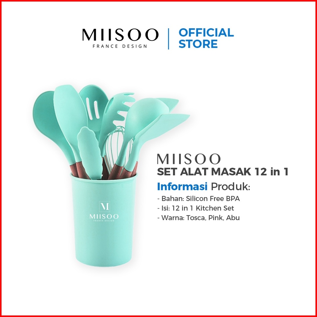 Miisoo 12 In 1 Set Alat Masak Sutil Sodet Silicone Spatula Silikon Tahan Panas Food Grade
